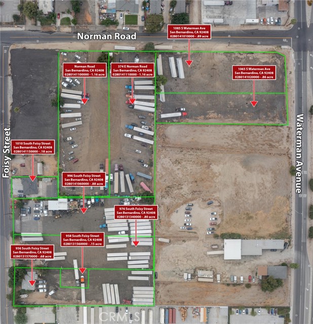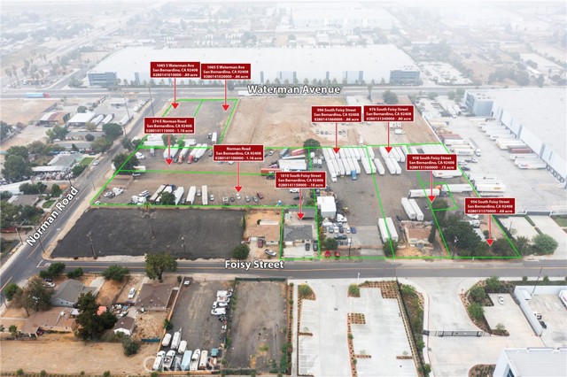 Great opportunity for development in San Bernardino, with this approximately 6.9 acres of land for sale in the fast growing industrial area. This includes 9 separate parcels, with frontage on multiple streets. There are several structures on the land for possibly office space. This property is centrally located to the 10, 210, 215 freeways, as well as the the San Bernardino International airport, and the rail system. The city is home to major employers like Amazon, Stater Bros, Cal State San Bernardino. San Bernardino presents a wide range of economic opportunities for businesses. There's a diverse economy, along with a strategic location, there's a lot of growth and opportunity. Buyer to verify all use and zoning with the city of San Bernardino.