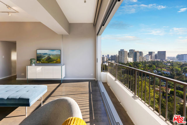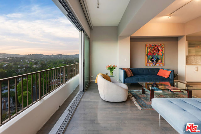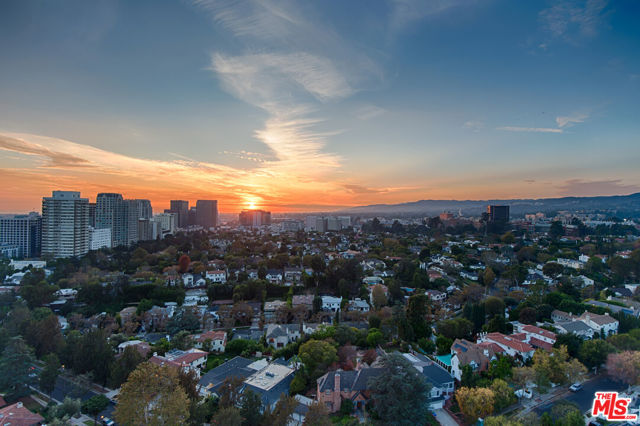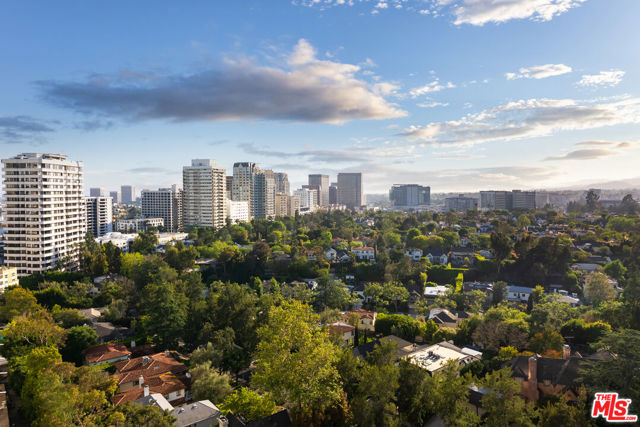 Perched high above the city in the prestigious Wilshire Regent, this exquisitely reimagined two-bedroom, two-bath residence offers sweeping northern vistas of Little Holmby and Bel Air from every room. Soaring ceilings elevate the sense of space, while the open-concept kitchen stuns with custom cabinetry, and Bosch appliances. The living room features new floor to ceiling sliding glass doors opening to a balcony with majestic views. Perfect for entertaining, the living space includes a bar and wine refrigerator. The primary suite boasts dual walk-in closets, providing ample storage, and a beautiful primary bath. The well appointed secondary bedroom contains built-in storage, a large closet, and a dedicated bath. Residents enjoy access to an impressive suite of amenities including 24/7 concierge, valet parking, pool, sun deck, state-of-the-art fitness center, banquet and conference rooms, and more. ALL UTILITIES ARE INCLUDED IN THE HOA (Electric, Water, Trash, Cable, Wi-fi).