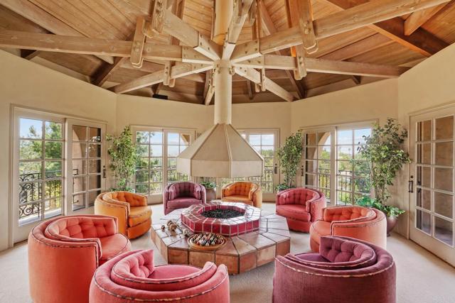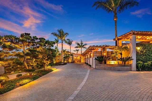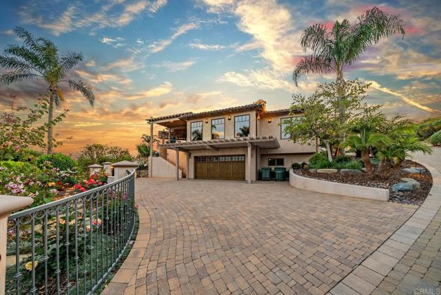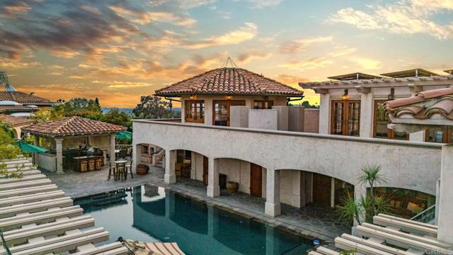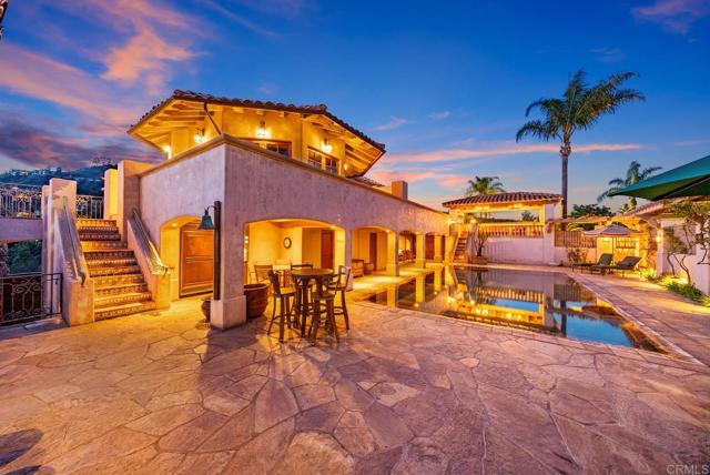 Discover an unparalleled opportunity in Mt. Helix with this expansive 2.41-acre estate, comprising a 5,872-sq-ft Santa Barbara–inspired main residence, a 2,428-sq-ft meticulously remodeled casita and a separate 0.77-acre ready-to-build vacant lot. The main residence blends architectural elegance with resort-style amenities, featuring interconnected octagonal structures and a dramatic tower room offering 360° panoramic views. Formal and casual living areas complement a chef’s kitchen and a primary suite that opens to a wraparound terrace. An executive office adds functionality, while the lower level includes versatile bedrooms, auxiliary flex rooms, and a gym/storage space. Outdoors, botanical gardens with over 100 rose varieties, four tranquil fountains, and diverse specimen trees create a serene setting. Multiple pools and spas, including an elevated spa with sweeping views to the east, south, and west—encompassing Downtown San Diego and Point Loma—provide relaxation, while expansive terraces and a fully equipped outdoor kitchen enhance alfresco dining experiences. Centrally located between the pools, a two-story pool house features multiple bathrooms, a rejuvenating sauna, and the “Las Brisas” guest retreat with a detached gym/yoga studio and direct spa access. The casita, extensively renovated in 2018, offers a chef’s kitchen, hardwood floors, exposed wood beam ceilings, and a separate downstairs studio with a full bath and kitchenette. Completing this exceptional estate is a generous buildable lot equipped with a private water well currently used for irrigation, offering sustainable landscaping and potential for future development or added privacy. This estate masterfully combines architectural elegance, luxurious amenities, and breathtaking views, offering a one-of-a-kind living experience in the prestigious Mt. Helix community.