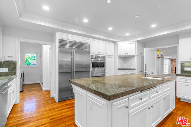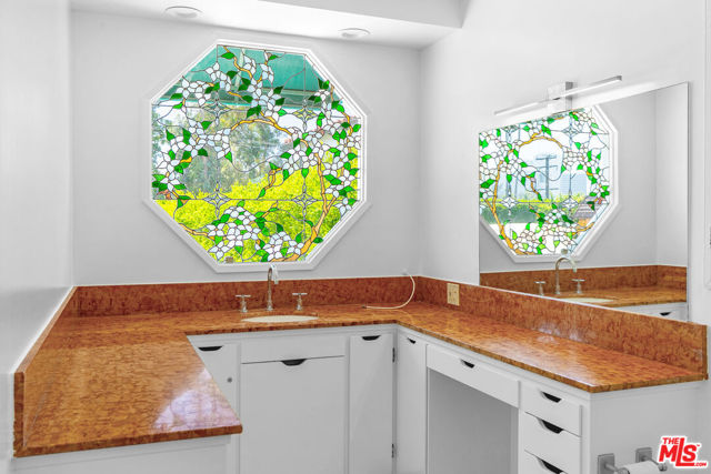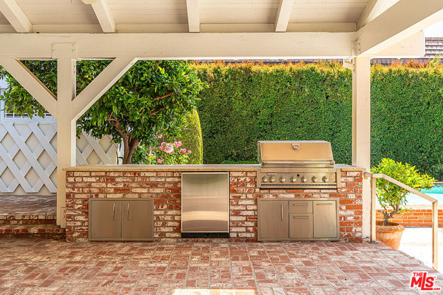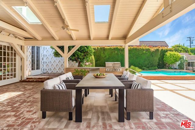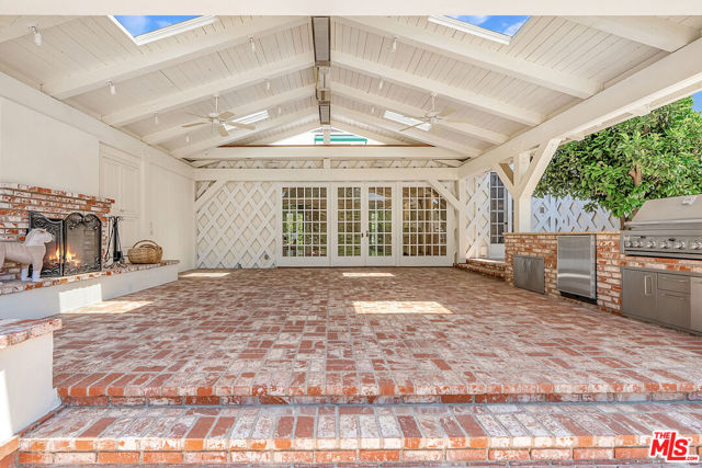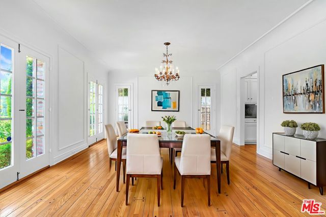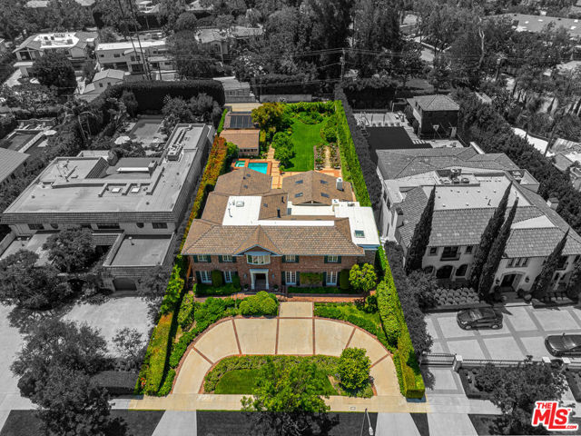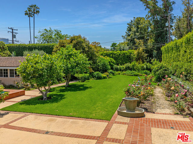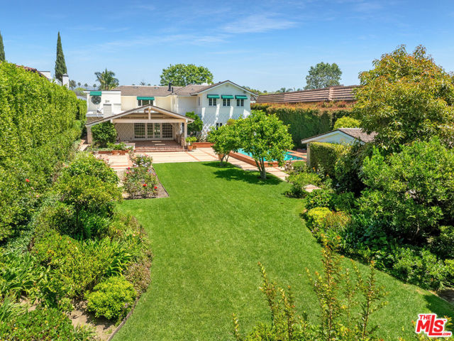 Nestled on a quiet, tree-lined street in the prestigious Beverly Hills Flats, this timeless estate radiates classic elegance and refined charm. Flooded with natural light, the interiors are graced by skylights, vintage details, and sophisticated accents that recall a bygone era of glamour. Set on an expansive, beautifully manicured lot, the residence offers a sprawling grassy yard and enchanting rose garden - an ideal backdrop for both serene mornings and grand entertaining. French doors invite effortless indoor-outdoor living, revealing a covered outdoor kitchen and barbecue pavilion with a cozy fireplace, perfect for year-round gatherings.Beyond its romantic character, the home offers generous living spaces, period architectural touches, and a private, tranquil setting just moments from world-class dining, shopping, and the best of Beverly Hills. Completing this rare offering are a two-car garage and circular motor court with parking for four additional vehicles, as well as a separate guest house perfect for extended stays or private retreats. This estate truly embodies classic Beverly Hills living at its finest.