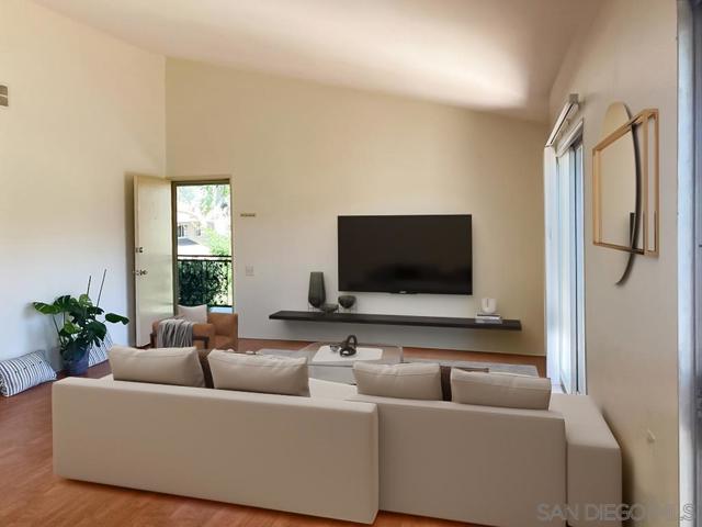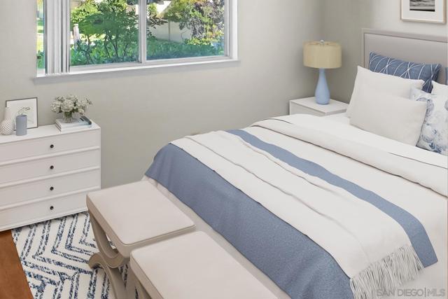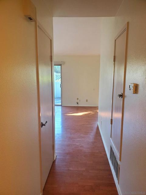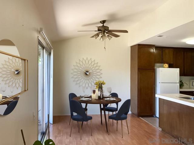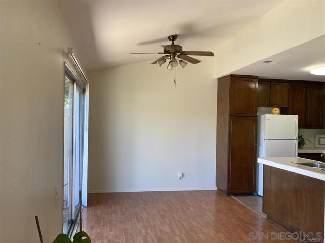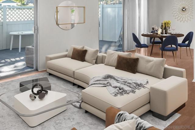 Woweee, a cozy country feeling with this semi-detached home. The Energy efficient HVAC system and heating ventilation air conditioning were installed in 2024 with value over $10,000 for comfort and assurance. Consistent and uniform laminate wood flooring throughout. Newer window blinds in each room to enhance privacy. Enjoy your private fenced-in backyard patio for relaxing, reading, BBQ events. Conveniently located minutes from the 15 Fwy., 78 Fwy. Your are surrounded by a park-like setting, truly a rare opportunity. Included is having a single garage with an electric door with a private driveway to park for guests or family members. Next to the driveway is a private driveway for additional parking for this home. This home is a stone's throw to the pool area. Back in your privately fenced patio, then cool down in the blue pool. Another feature that might help your needs is secured RV parking for a minimum fee per month when available. Your heart will be touched when you walk through it.
