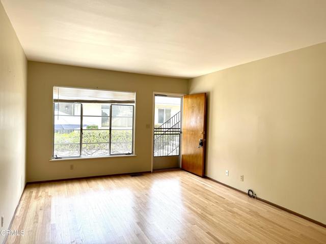 Bright and airy 1BR/1BA unit in a well-maintained 9-unit building. Features include gleaming hardwood floors, fresh interior paint, central A/C, community laundry, and a dedicated single carport space.