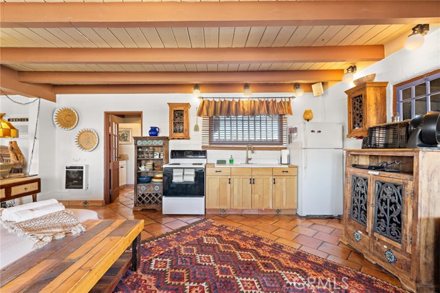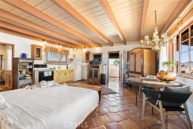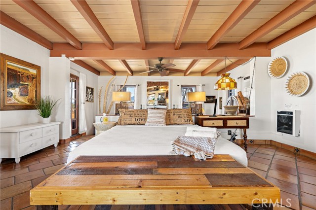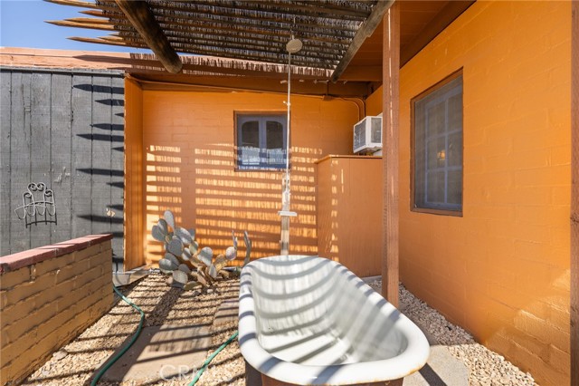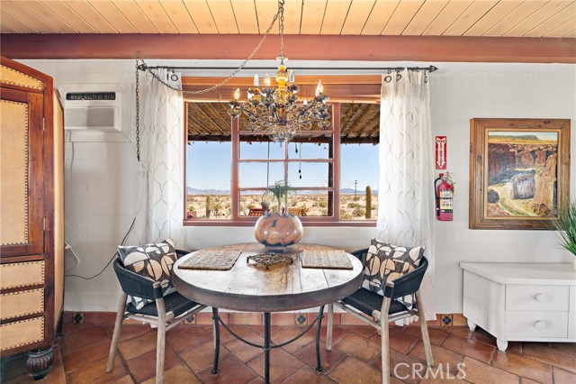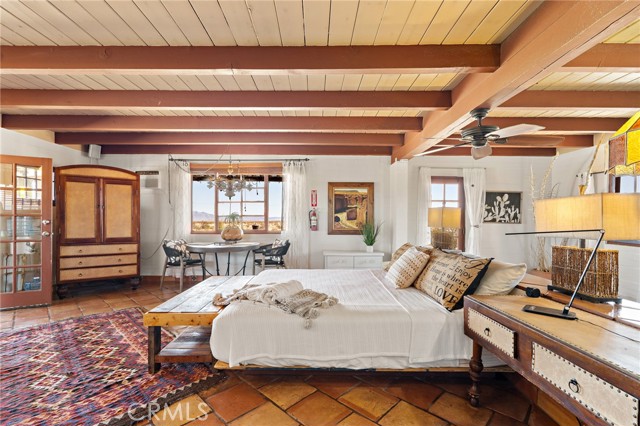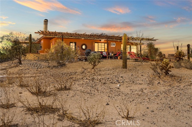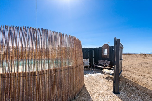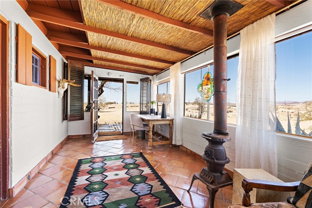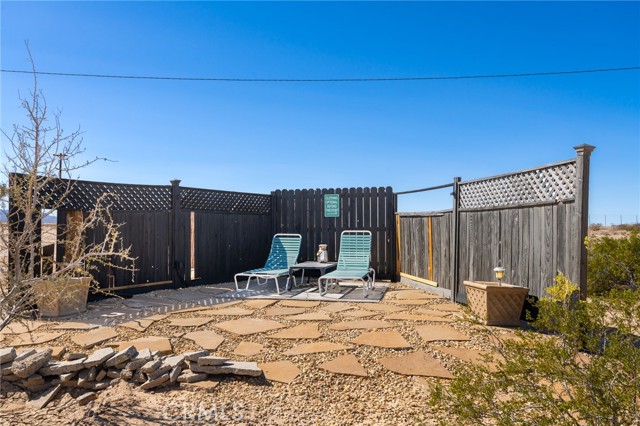 Now available for long-term lease, ADOBE is a fully furnished mid-century home located in the quiet and expansive Wonder Valley area of Twentynine Palms. Set on 5 fully fenced acres with a gated drive and sweeping 360-degree desert and mountain views, this property offers privacy, style, and comfort in one of the High Desert's most serene settings. The interior features Saltillo tile floors, beamed ceilings, a sunken living room with a stone fireplace, a walk-in shower, and a flexible office or sitting porch-ideal for remote work or quiet reading. The home's layout and southwestern-inspired details create a warm, inviting space filled with natural light. Outdoor amenities include a private hot tub, shaded lounging areas, a BBQ, fire pit, fire bowl all set within a professionally designed landscape created by an award-winning LA-based architect. A sunset lookout point and ambient outdoor lighting complete the experience. This home offers the feeling of remote living while still being only 10 minutes from downtown Twentynine Palms, 15 minutes from the Marine base, and near The Palms restaurant. Some pets may be considered.