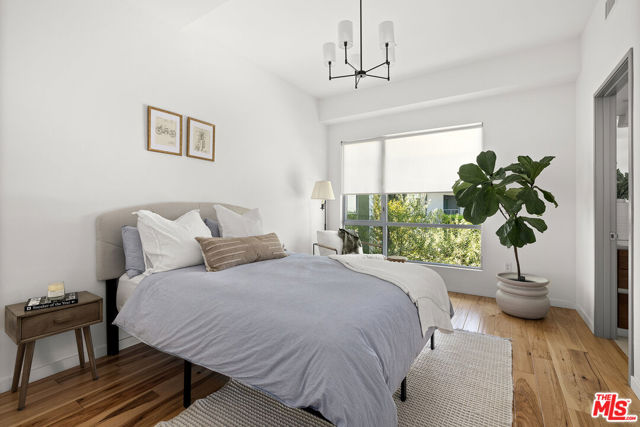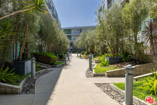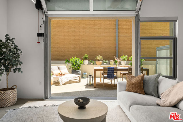 Introducing Modern Westside living at the T-Lofts! Enter through lushly landscaped walkways to this stunning two-story unfurnished end unit with abundant natural light and no neighbor on one side. The open floor plan boasts soaring ceilings, polished concrete floors, recessed lighting, and a bonus den ideal for an office. A chef's kitchen with stainless steel appliances, Caesarstone counters, and reverse osmosis system complements custom wood shelving under the staircase. An industrial roll-up door opens to a large patio for alfresco entertaining. Upstairs offers two bedrooms and baths, including a main suite with walk-in closet and spa-like bath. Two side-by-side parking spaces sit near the elevator. Community amenities include a hot tub, BBQ/picnic areas, fitness center, EV charging, and guest parking. Centrally located near Sawtelle dining and the Expo Line for easy access to Downtown LA and Santa Monica.