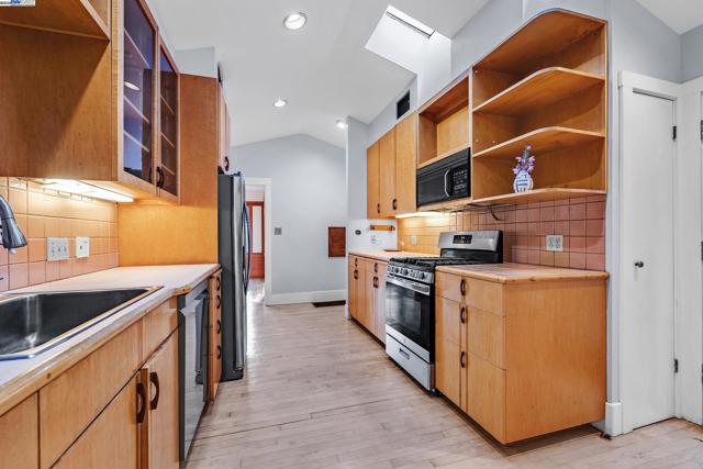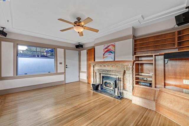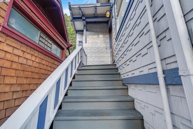 Magical Glenview Tree House! On the historic “Glendora Path” featured in the classic book ‘Secret Stairs: East Bay..” For those who love to walk and be amongst nature. Access via stairway up from Elbert St. or the Glendora pathway from Glendora Ave. Upon arrival the reward is views, privacy and natural light. Two bedroom/flex spaces upstairs as well as the kitchen, fire insert for heating and one bathroom. Large bedroom suite downstairs with full bathroom. Lovingly re-imagined by the owners with painstaking attention to the period details including restored windows, dining room with wainscoting and built-in breakfront with stained glass, doors with decorative hinges and door handles, in addition four rooms have picture molding and are internally wired for sound, surround sound in the living room and controlled sound in the kitchen. Skylights and stainless steel appliances, with restored maple cabinetry highlight the kitchen as well. The dining + living rooms have coffered ceilings & the wood floors are newly refinished. Lots of storage space; detached cottage can serve as office and subfloor access/boiler room has new energy efficient furnace and water heater. Lush outdoor spaces for gardening with rebuilt deck.