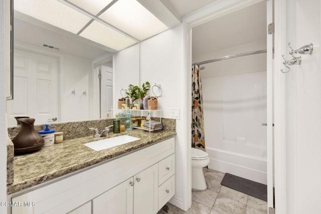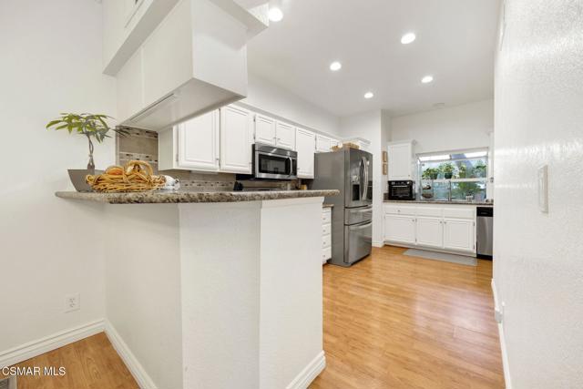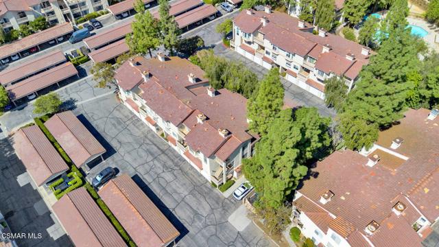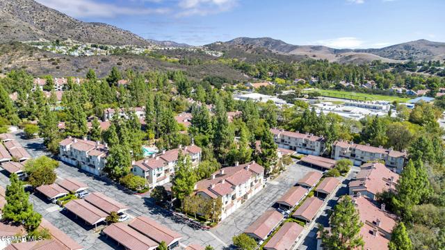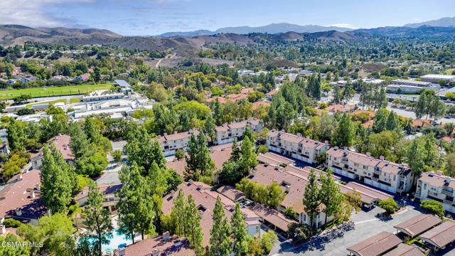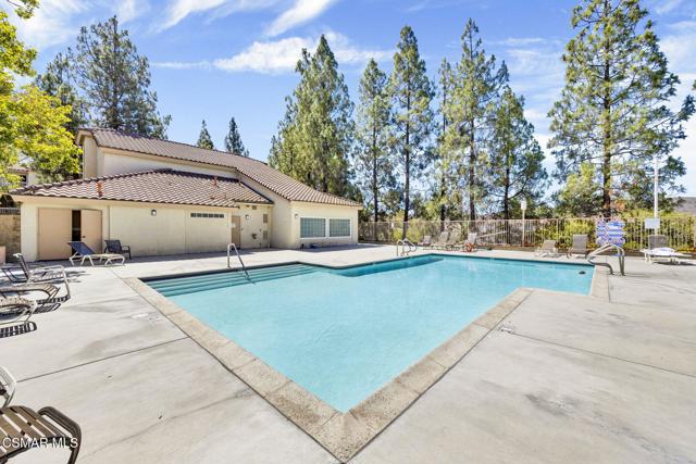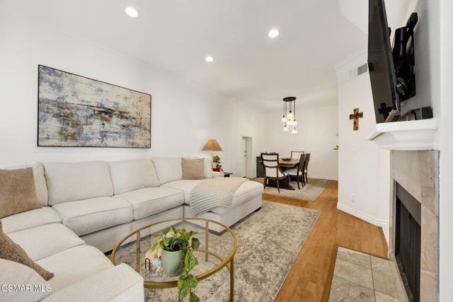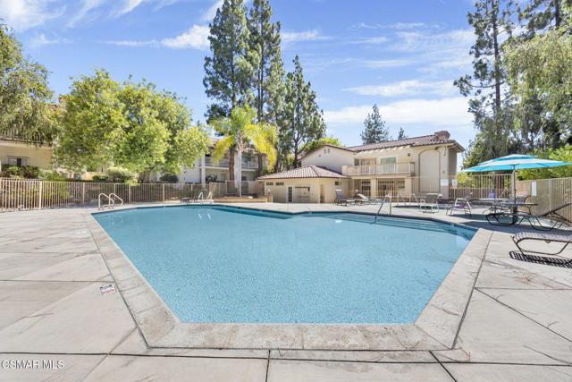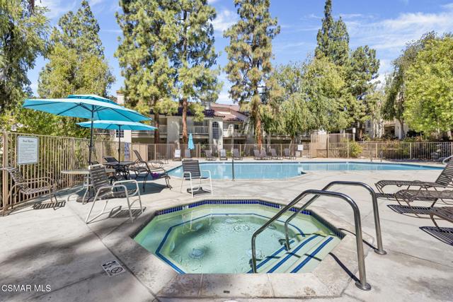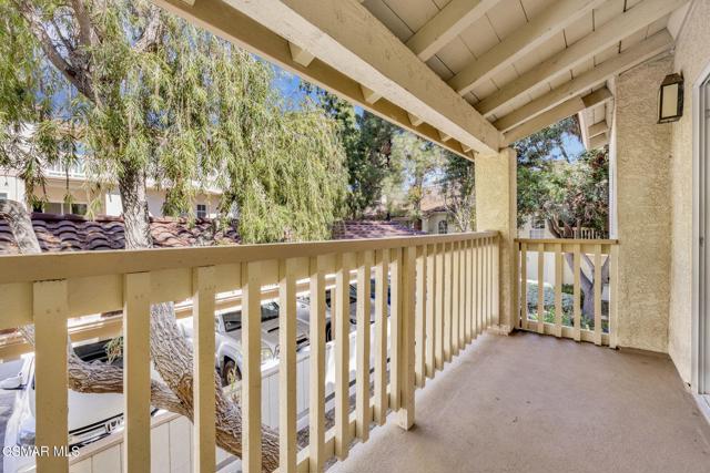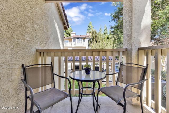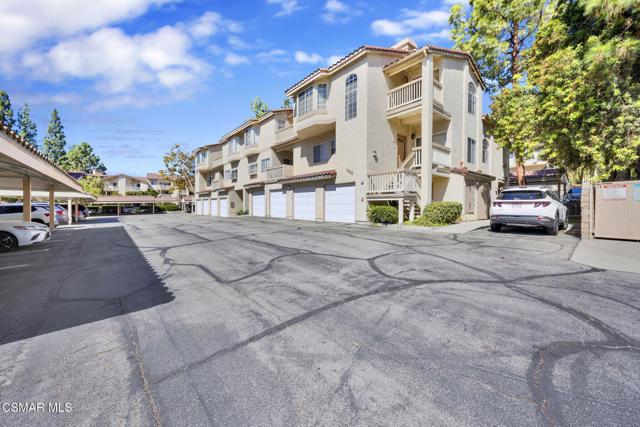 Welcome to this beautifully updated end-unit townhome in the heart of Oak Park! This 2-bed, 2.5-bath home offers ground-level entry, wood-like flooring, recessed lighting, plantation shutters, and direct access to an attached oversized 1-car garage. The spacious kitchen features granite countertops, newer stainless steel appliances, pull-out pantry shelves, and ample storage. The adjacent laundry area includes washer/dryer and extra shelving. Enjoy a cozy gas fireplace with marble tile surround in the living room, plus access to a private front patio. Upstairs, both bedrooms offer en-suite bathrooms and private balconies. The primary suite features vaulted ceilings and a custom tile shower with glass inset. An additional assigned covered parking spot is included. Shadow Ridge amenities include 2 pools, 2 spas, 24-hour gym, sauna, racquetball court, tennis courts, sand volleyball, clubhouse, and walking trails. HOA covers trash and basic cable/internet. Close to parks, shopping, hiking, dining, and top-rated Oak Park schools.All this, just minutes from parks, hiking trails, shopping, dining, and top-rated Oak Park schools. Don't miss the opportunity to call this stunning townhome your own!