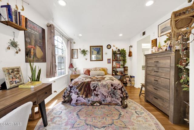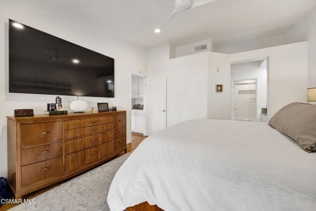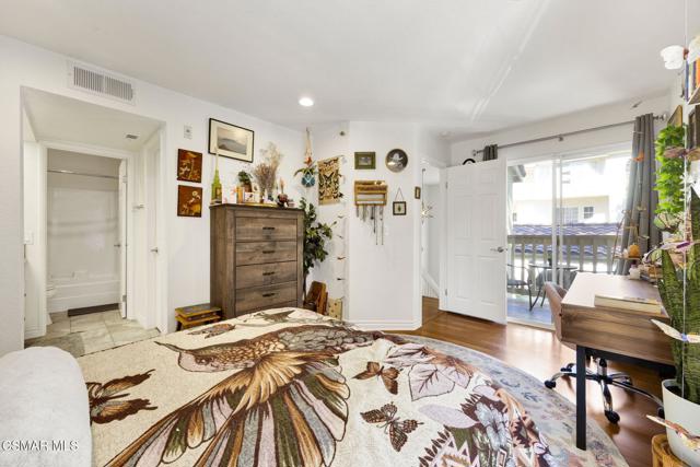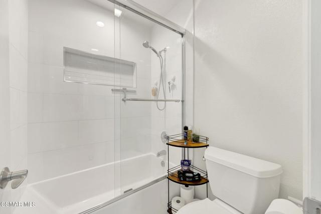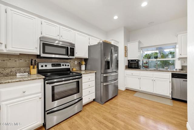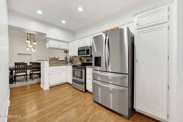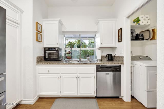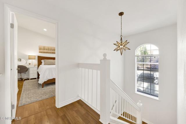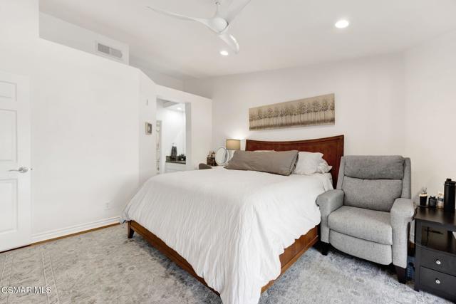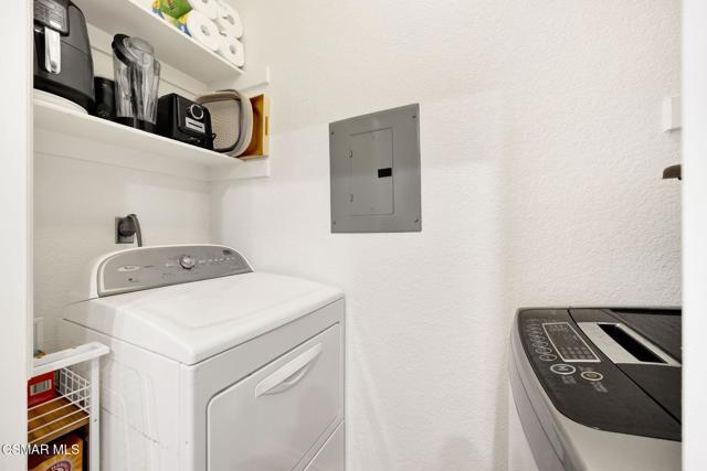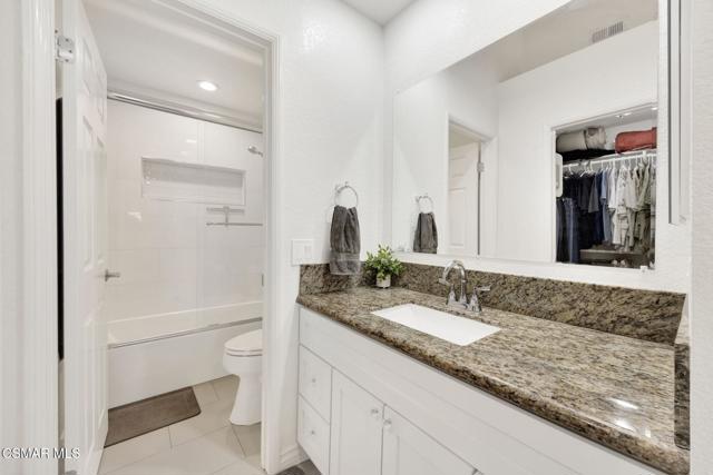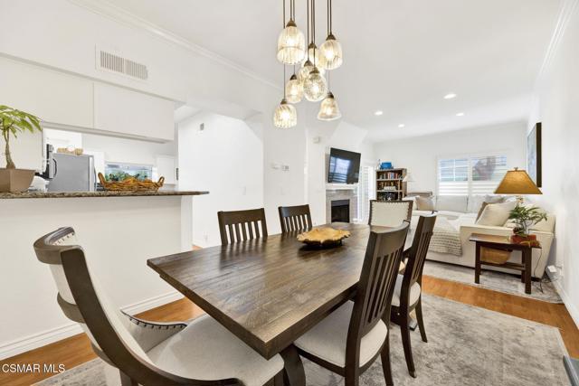 Welcome to this beautifully updated end-unit townhome in the heart of Oak Park! This 2-bed, 2.5-bath home offers ground-level entry, wood-like flooring, recessed lighting, plantation shutters, and direct access to an attached oversized 1-car garage. The spacious kitchen features granite countertops, newer stainless steel appliances, pull-out pantry shelves, and ample storage. The adjacent laundry area includes washer/dryer and extra shelving. Enjoy a cozy gas fireplace with marble tile surround in the living room, plus access to a private front patio. Upstairs, both bedrooms offer en-suite bathrooms and private balconies. The primary suite features vaulted ceilings and a custom tile shower with glass inset. An additional assigned covered parking spot is included. Shadow Ridge amenities include 2 pools, 2 spas, 24-hour gym, sauna, racquetball court, tennis courts, sand volleyball, clubhouse, and walking trails. HOA covers trash and basic cable/internet. Close to parks, shopping, hiking, dining, and top-rated Oak Park schools.All this, just minutes from parks, hiking trails, shopping, dining, and top-rated Oak Park schools. Don't miss the opportunity to call this stunning townhome your own!