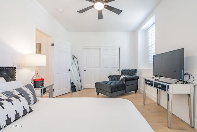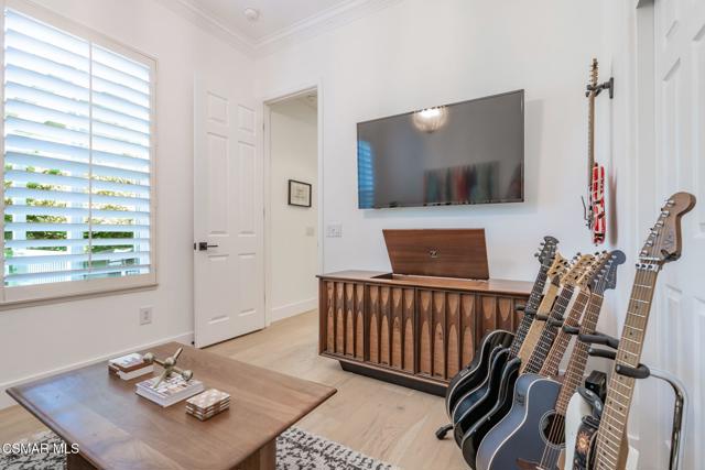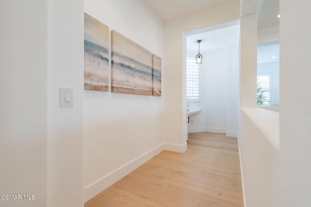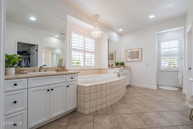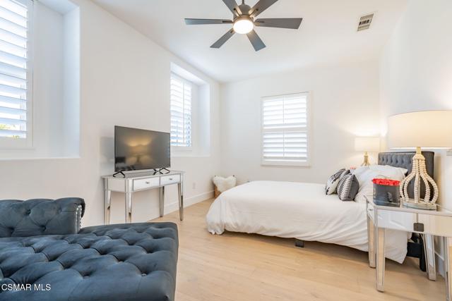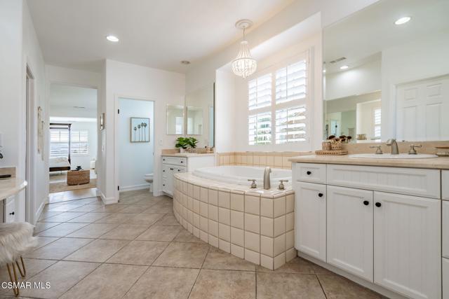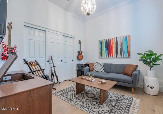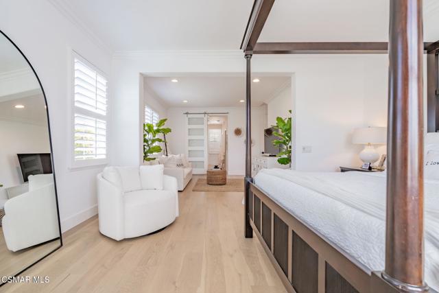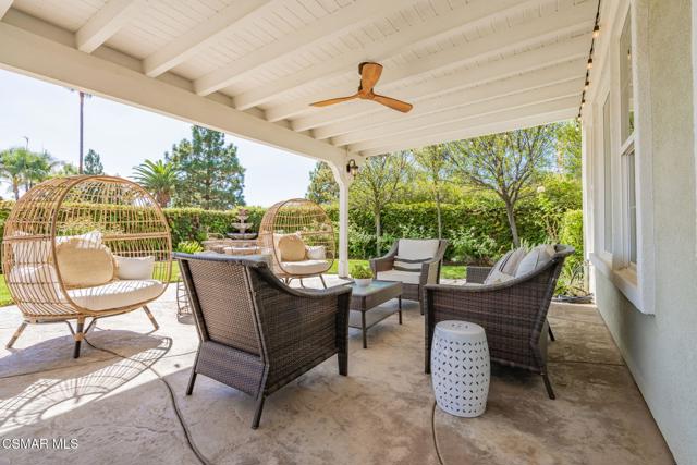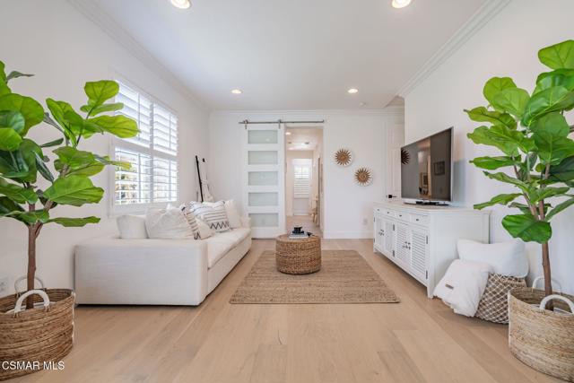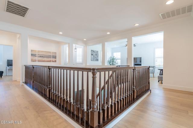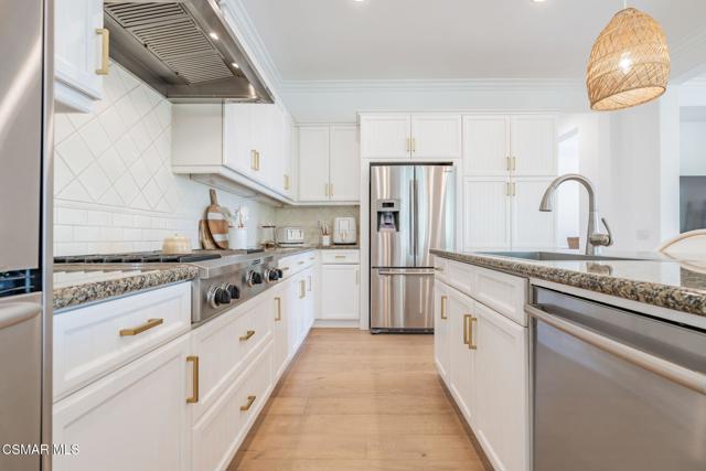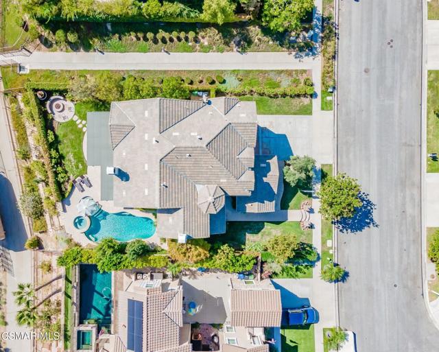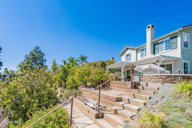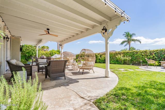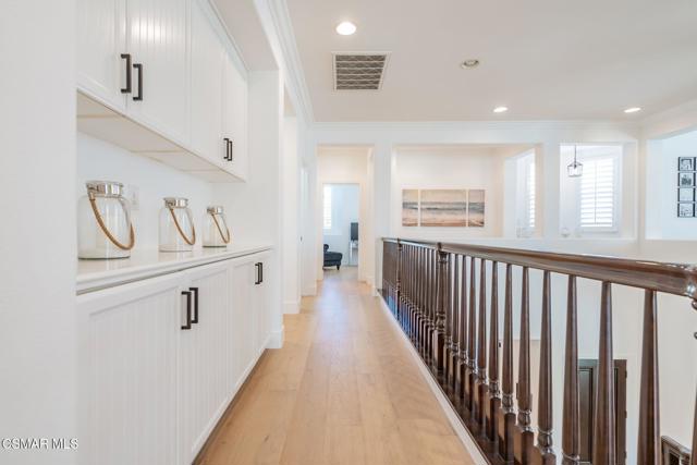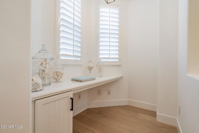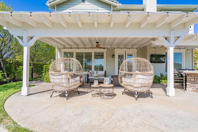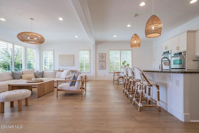 Located in the prestigious Wild Horse Canyon neighborhood, this exceptional property is the perfect blend of luxury, style and comfort, featuring a bright and beautiful open floor plan with white oak flooring throughout, a spacious great room with fireplace and chefs kitchen with bead board cabinets, stainless steel appliances and a large center island for gathering with family and friends. Elegant details abound, from soaring ceilings and crown molding to plantation shutters. This home offers a main floor bedroom or office, a full bath, formal living room with fireplace, and a large dining room. The luxurious primary suite offers a true retreat, complete with separate bedroom and sitting area and a spacious en-suite bathroom and 2 walk-in closets. Upstairs features a spacious loft, additional office nook, 3 upstairs bedrooms and a full hall bath. The expansive backyard is an entertainer's paradise, boasting breathtaking mountain views, as well as views of Simi Hills Golf Course. This outdoor oasis features a resort-style pool and spa with waterfalls and a beach entry, a covered patio with charming string lighting for al fresco dining, built in bar area with BBQ and refrigerator, a cozy fire pit area, over 20 fruit trees along back slope, lush and mature landscaping that provided privacy and tranquility. 2 car attached garage, as well as detached one car garage, both with ample built in cabinetry. This home has it all...comfort, style and luxury!