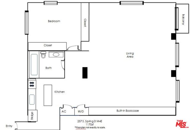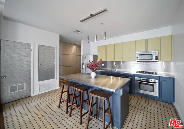 CHARMING CORNER UNIT w/ UNDERGROUND GARAGE PARKING INCLUDED! This 1170sf unique corner LIVE/WORK loft in the historic Douglas building features 1 fully enclosed bedroom plus a second bedroom or office area, 1 bathroom, and 1 parking space in the building. The loft features massive windows that bring in tons of natural light and city views, restored vintage hardwood floors, exposed brick walls, and tall ceilings which add to the NY-style aesthetic of this loft. There is one completely private bedroom, and an area off the open plan living area that can be a second bedroom nook or office. The flex layout features a large custom bookcase with tons of storage. There is a spacious bathroom just off the enclosed bedroom. The kitchen features Poggen Pohl cabinetry and stainless steel appliances, and a spacious kitchen island with lots of storage. The open plan dining and living area makes it easy to entertain and there is a fire escape balcony off the living room. There is a powerful central heat and AC unit, a stacked W/D in the hall closet, and the loft comes with 1 RARE ASSIGNED UNDERGROUND GARAGE PARKING SPACE in the building, and guest spaces available. The incredible location is just a few blocks from the Little Tokyo and Arts District, The Broad, Grand Central Market, Arts District, Financial District, Whole Foods, Walt Disney Concert Hall, The Broad Museum, MOCA, Spring Street Park, Spring Arcade, the iconic Bradbury Building with the exclusive Neuehouse members club, Dorothy Chandler Pavilion, the Frank Gehry-designed The Grand LA, the new Metro regional connector line, and so much more.
