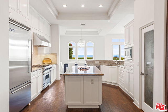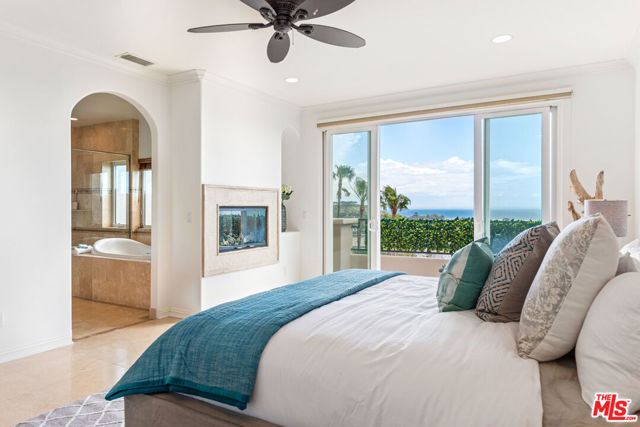 The Toscana complex of Malibu, where Mediterranean charm meets luxurious coastal living. This spacious townhome offers breathtaking ocean views stretching from the Malibu Civic Center to Santa Monica Bay. Upon entering, you are greeted by a serene fountain walkway, vaulted ceilings, and complete with a private yard that showcases panoramic vistas of the sparkling Pacific. The open-plan layout features coffered ceilings, complemented by rich wood and travertine floors that enhance the home's Mediterranean character. The focal point is the ocean-view family room, just two steps down from the main level, seamlessly connected to the chef's kitchen adorned with granite countertops and Viking appliances. Adjacent is a chandelier-lit dining area and a living room warmed by a fireplace, offering expansive views of both the ocean and mountains. Large windows and French doors open onto a flagstone patio and landscaped yard, extending your living space outdoors with vistas that span from downtown Malibu to Catalina Island. Ascend the curved staircase, the residence features three bedrooms, including an ocean-view primary suite that epitomizes luxury living. This sanctuary includes a spacious closet, a private oceanview deck, and a two-sided fireplace that graces both the bedroom and the opulent primary bath suite. For convenience, the unit includes a two-car garage and two additional parking spaces in front, along with guest parking available within the complex. Residents also enjoy access to exclusive amenities such as a community pool, spa, clubhouse with a fitness room, and meticulously landscaped grounds that enhance the serene coastal lifestyle. Experience the pinnacle of Malibu living in this Mediterranean townhome at Toscana, where every detail speaks of luxury, comfort, and unparalleled ocean views. Apply here: https://apply.link/VNtUKPk