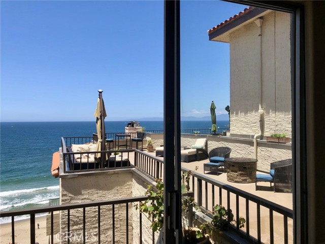 A perfect executive rental with an expansive private patio. Panoramic ocean views from Palos Verdes to Point Dume with wrap around deck, fire pit and gas grill—perfect for your next cocktail party. Sub Zero refrigerator, gas fireplace, wood floors, Bose sound system, remote controlled window shades, Rainfall and handheld showers, and oversized tub. The 3rd bedroom is currently being used as an office. Fully furnished (although some furniture can be negotiated) including dishes, cookware, and small appliances. Two secured, non-tandem parking spaces located on the main parking level directly next to the main lobby and elevators. Private access to the beach between Topaz Avenue and Ruby Avenue. A 5 minute Walk to the pier or the village for restaurants, shopping, entertainment, whale watching, the Beach Life Festival and the farmers market on Thursday mornings. All things aquatic within a stone’s throw. A truly unique property. A very unique opportunity!