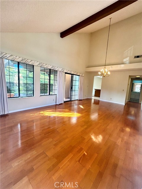 Beautiful 3-bedroom, 2.5-bath end-unit home with an attached 2-car garage and direct access. This spacious property features an open floor plan with soaring cathedral ceilings and wood and laminated flooring throughout the house (pics with carpet flooring taken prior to recent update). The family room opens to the kitchen and includes a cozy fireplace, perfect for relaxing or entertaining. The primary bedroom offers a second fireplace, adding warmth and charm. All three bedrooms are located upstairs. Enjoy a large private patio that opens to a peaceful greenbelt with mature trees, offering privacy and tranquility. Conveniently located next to guest parking and close to shopping centers, parks, schools, the library, and easy freeway access.