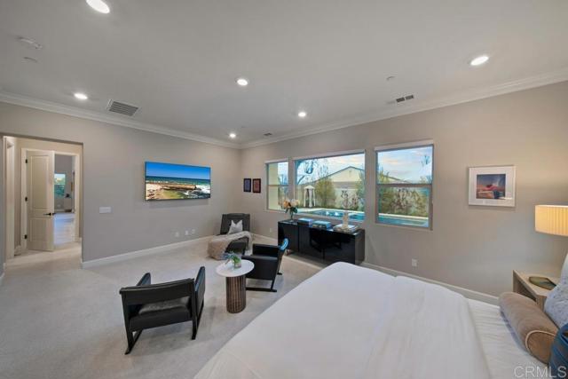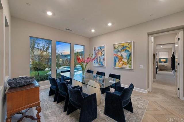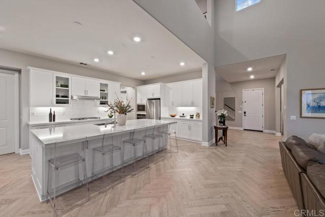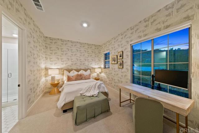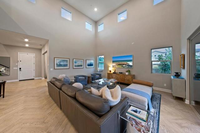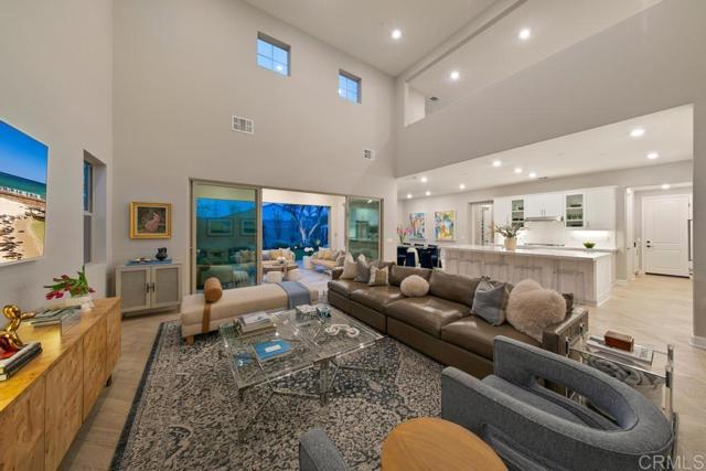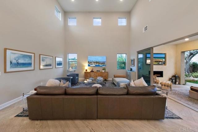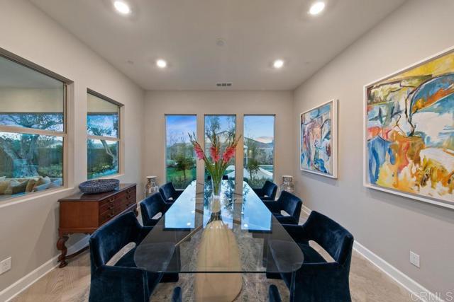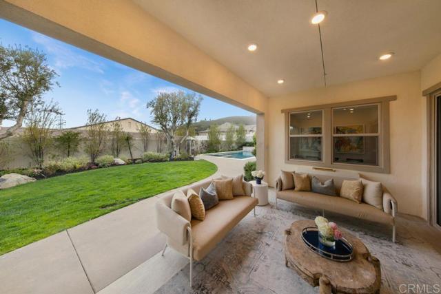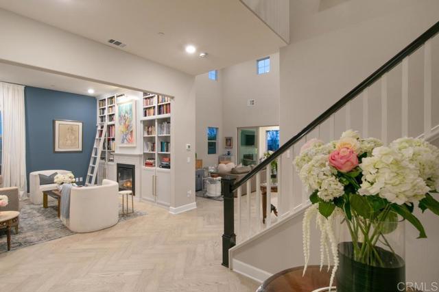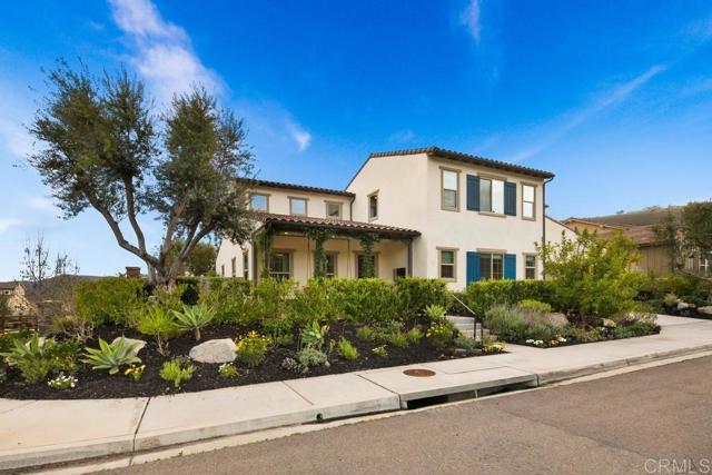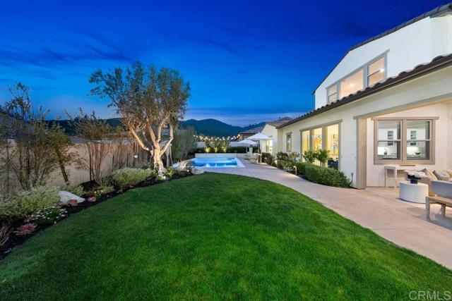 Step into a realm where curated luxury meets the serene, sun-drenched ambiance of this exquisite corner lot home in Harmony Grove Village. This residence is not just a home; it's an immersive lifestyle experience, meticulously crafted for those with discerning tastes. Over $300,000 in bespoke enhancements have transformed this property into a haven of refined elegance, where every detail resonates with sophisticated living. What sets this home apart are the stunning Spanish Olive Trees from a rare grove that anchor the landscape with timeless elegance. Five mature Manzanillo olive trees, each over 80 years old, were originally cultivated in Sonoma Valley and carefully transported into place. These majestic specimens evoke the charm of a Mediterranean estate, with sculptural trunks and a silvery canopy that catches the light beautifully, day or night. These opulent olive trees provide not just shade and serenity but also a sense of rooted history and effortless luxury rarely found in Southern California homes—a true signature feature of the grounds. This exquisite home features four bedrooms and four and a half baths, including a two fully en-suite bedroom on the main floor which includes the Primary Suite, offering unparalleled convenience and privacy for guests or multi-generational living. Inside, the atmosphere shifts to one of sophisticated intimacy. The elegant library, with its custom-crafted built-in bookcase and fireplace feature wall, serves as an architectural centerpiece designed for both beauty and function. Framed by rich, deep-toned walls, the light gray millwork exudes timeless sophistication, perfectly showcasing an expansive collection of books, décor, and art objects. Symmetrical shelving offers ample space, while a charming ladder enhances accessibility. At the heart of this refined space, a fireplace anchors the room, topped by a gallery-lit art niche that draws the eye upward, creating a curated, gallery-like ambiance. Hidden cabinetry below provides seamless storage, enhancing the room’s clean, luxurious aesthetic. Whether entertaining or unwinding, this intimate space is a sanctuary of style—ideal for quiet nights or refined gatherings. Beneath your feet, chalet white oak herringbone floors flow seamlessly throughout the main living area. The home features a spacious loft with an open wall that overlooks the lower level. The master bedroom, also on the main floor, boasts two closets and lovely views of the backyard. The dedicated dining room offers a picturesque view of the beautifully landscaped outdoor space. The huge center island, topped with white quartz, serves as the heart of this open floor plan. Step outside to the covered loggia with a fireplace that leads to a resort-style backyard oasis. The recently added pool and spa, a shimmering expanse of azure, are framed by olive and lemon trees, complemented by a cascading water feature. This private escape invites you to slow down and bask in serenity. Custom porch swings, suspended by nautical ropes, sway gently in the breeze, inviting moments of quiet reflection. Raised garden beds, bursting with vibrant blooms, add a touch of organic beauty and functionality. Enjoy the added benefit of fully paid solar panels, ensuring energy efficiency and sustainability.