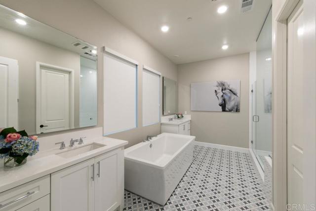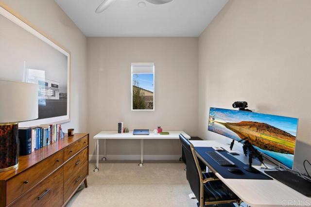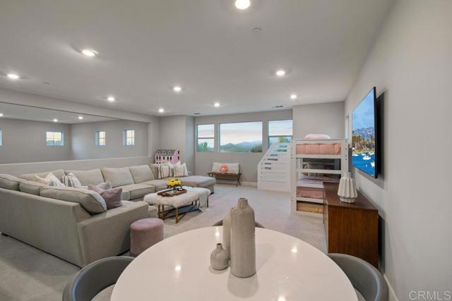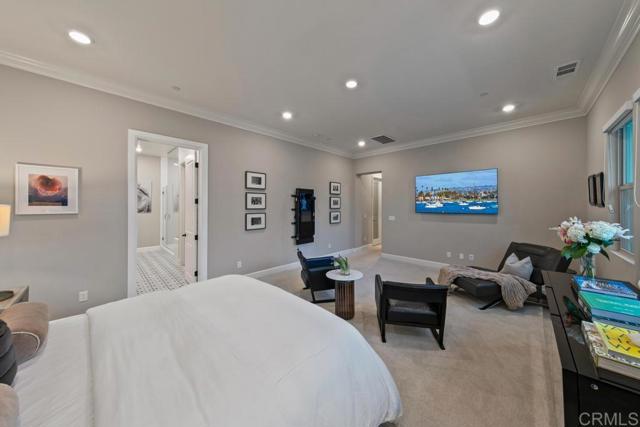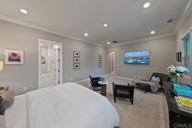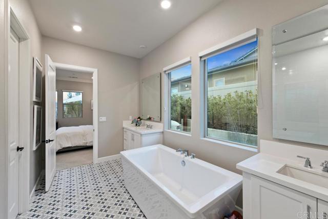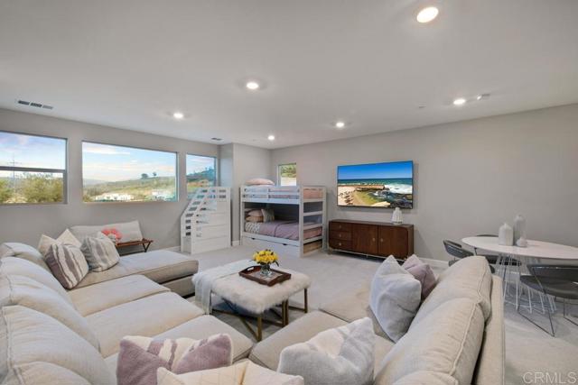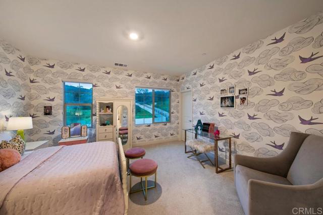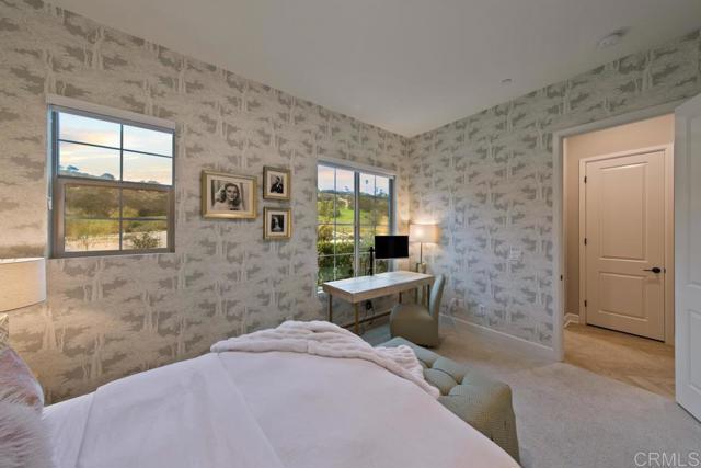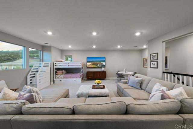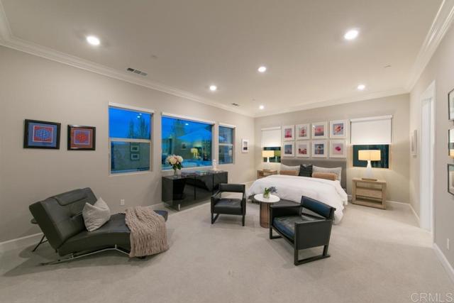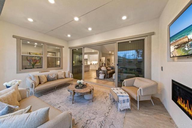 Step into a realm where curated luxury meets the serene, sun-drenched ambiance of this exquisite corner lot home in Harmony Grove Village. This residence is not just a home; it's an immersive lifestyle experience, meticulously crafted for those with discerning tastes. Over $300,000 in bespoke enhancements have transformed this property into a haven of refined elegance, where every detail resonates with sophisticated living. What sets this home apart are the stunning Spanish Olive Trees from a rare grove that anchor the landscape with timeless elegance. Five mature Manzanillo olive trees, each over 80 years old, were originally cultivated in Sonoma Valley and carefully transported into place. These majestic specimens evoke the charm of a Mediterranean estate, with sculptural trunks and a silvery canopy that catches the light beautifully, day or night. These opulent olive trees provide not just shade and serenity but also a sense of rooted history and effortless luxury rarely found in Southern California homes—a true signature feature of the grounds. This exquisite home features four bedrooms and four and a half baths, including a two fully en-suite bedroom on the main floor which includes the Primary Suite, offering unparalleled convenience and privacy for guests or multi-generational living. Inside, the atmosphere shifts to one of sophisticated intimacy. The elegant library, with its custom-crafted built-in bookcase and fireplace feature wall, serves as an architectural centerpiece designed for both beauty and function. Framed by rich, deep-toned walls, the light gray millwork exudes timeless sophistication, perfectly showcasing an expansive collection of books, décor, and art objects. Symmetrical shelving offers ample space, while a charming ladder enhances accessibility. At the heart of this refined space, a fireplace anchors the room, topped by a gallery-lit art niche that draws the eye upward, creating a curated, gallery-like ambiance. Hidden cabinetry below provides seamless storage, enhancing the room’s clean, luxurious aesthetic. Whether entertaining or unwinding, this intimate space is a sanctuary of style—ideal for quiet nights or refined gatherings. Beneath your feet, chalet white oak herringbone floors flow seamlessly throughout the main living area. The home features a spacious loft with an open wall that overlooks the lower level. The master bedroom, also on the main floor, boasts two closets and lovely views of the backyard. The dedicated dining room offers a picturesque view of the beautifully landscaped outdoor space. The huge center island, topped with white quartz, serves as the heart of this open floor plan. Step outside to the covered loggia with a fireplace that leads to a resort-style backyard oasis. The recently added pool and spa, a shimmering expanse of azure, are framed by olive and lemon trees, complemented by a cascading water feature. This private escape invites you to slow down and bask in serenity. Custom porch swings, suspended by nautical ropes, sway gently in the breeze, inviting moments of quiet reflection. Raised garden beds, bursting with vibrant blooms, add a touch of organic beauty and functionality. Enjoy the added benefit of fully paid solar panels, ensuring energy efficiency and sustainability.