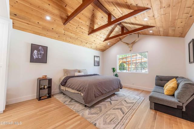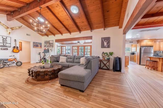 Charming Canoga Park Estate with Endless Amenities!Welcome to 21315 Community St., a beautifully updated 3-bedroom, 2-bathroom equestrian home nestled in the heart of Canoga Park. This spacious 1,913 sq ft residence sits on a sprawling 31,209 sq ft lot, offering ample space for both living and entertaining.Step inside to find wood floors that flow throughout. The living areas are graced by vaulted ceilings with elegant wood panel detailing, giving the home a warm, rustic charm. Cozy up by one of the two fireplaces or enjoy preparing meals in the updated kitchen, featuring granite countertops, a center island, and plenty of storage.The master suite is a true retreat, complete with vaulted wood ceilings and a large walk-in closet that leads into the luxurious master bath. Here, you'll find a separate tub, a stall shower, and modern finishes that create a spa-like atmosphere. Two additional bedrooms offer ample space and comfort for family or guests. A separate laundry room adds convenience to your daily routine.The backyard is an entertainer's dream! Take a dip in the sparkling pool, relax under the covered gazebo, or unwind in the above-ground spa. The expansive grounds also feature a custom barn equipped with water, electricity, tack room, an arena, and additional stalls and pens--perfect for equestrian enthusiasts or hobby farmers. A charming guest house offers extra space for visitors or potential income.ADU permits and plans ready to issue.Don't miss out on this one-of-a-kind property that offers a unique blend of rural living with modern comforts. Schedule your tour today and experience the beauty and versatility of 21315 Community St.!