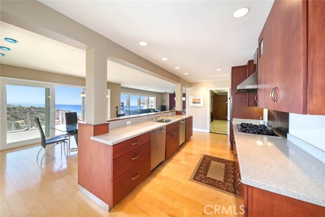 Centrally located in the Portafina area of Laguna Beach. Just a few blocks to Victoria Beach where you can enjoy easy access to restaurants, shopping and all that Laguna has to offer. This nicely updated and well-maintained home backs to open space and has good ocean and canyon views. The main floor has a great room concept with the kitchen open to the dining and living areas with ocean views. The chef's kitchen offers abundant counter space and storage. Upstairs the master suite has a separate sitting area where you can enjoy Catalina sunsets, and both secondary bedrooms have ocean views. The 3rd bedroom has built-ins in place of a closet and has been used as an office. The large rear deck is great for entertaining or spending a quiet afternoon getting some sun.