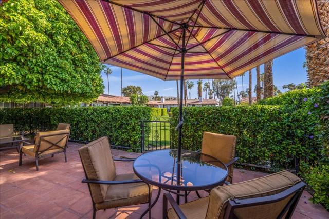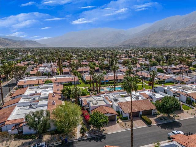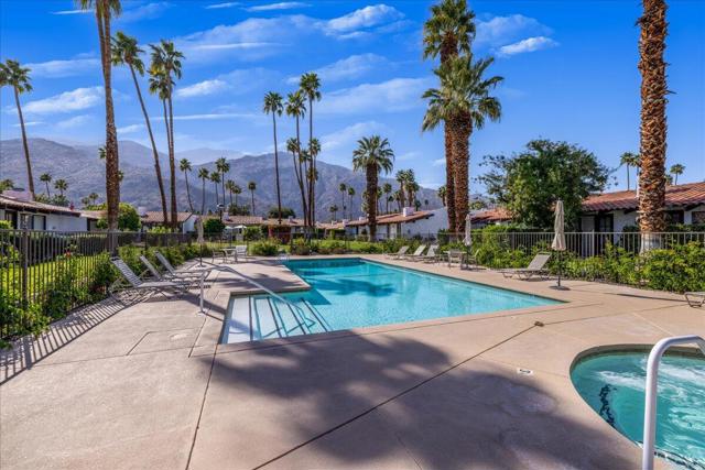 Your South Palm Springs Sanctuary Awaits! Nestled in the heart of Deepwell Ranch, this stunning 2-bedroom, 2-bath corner unit offers the perfect blend of luxury, comfort, and convenience. Just steps from the pool and spa, this home boasts breathtaking southwest mountain views along a lush greenbelt, creating a serene and picturesque backdrop from your private patio. Inside, you experience the spaciousness of vaulted wood-beamed ceilings and the warm ambiance of a fireplace, making the living area perfect for both elegant entertaining and relaxed everyday living. The open floor plan bathed in natural light, showcases an updated kitchen that flows seamlessly into the spacious family/dining room. The primary suite is a true retreat, enhanced with solar tubes and recessed lighting. It features custom closets and a spa-inspired bathroom with quartz countertops, twin sinks, and a full-length mirror. A separate soaking tub and the glass mosaic walk-in shower create a luxurious spa-like escape. The versatile guest bedroom features a Murphy bed, making it ideal as a bedroom or office. It offers access to a stylish bathroom with a glass mosaic-tiled shower and doubles as a powder room for hosting visitors. Every detail has been thoughtfully upgraded, including windows coated with film for privacy and passive temperature control that fills the space with soft, natural light. Stepping outside to your spacious back patio; the perfect spot for morning coffee, sunset cocktails, or summer barbecues, while taking in the breathtaking views. Within the patio you can either enjoy the cooling shade from the mature grapefruit tree or the warmth of the brilliant sun. As part of Deepwell Ranch, you'll enjoy resort-style amenities, including three saltwater pools and spas, tennis court, pickle ball courts, and 24-hour manned security--all within a meticulously maintained, gated community. The attached 2-car garage with epoxy floor and built-in cabinets adds convenience and ample storage. The freshly re-asphalted roads provide a clean, refreshed feel to the neighborhood. Plus, you're just minutes from downtown Palm Springs, with its vibrant dining, shopping, and entertainment hotspots, including L'Horizon, Koffi, and Ace Hotel. This is more than just a home--it's a lifestyle. Don't miss your chance to own this move-in-ready gem in one of Palm Springs' most sought-after communities. Welcome Home!