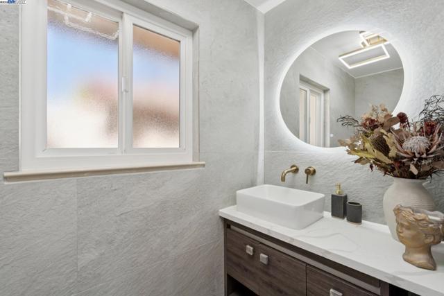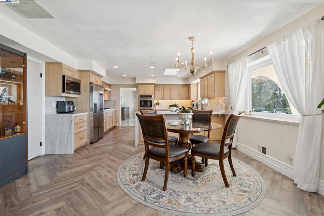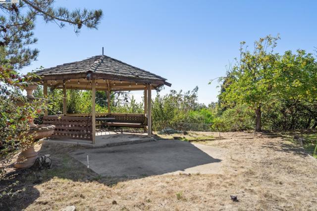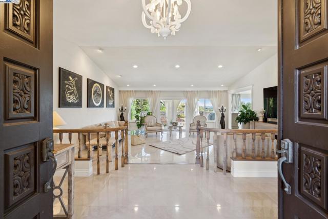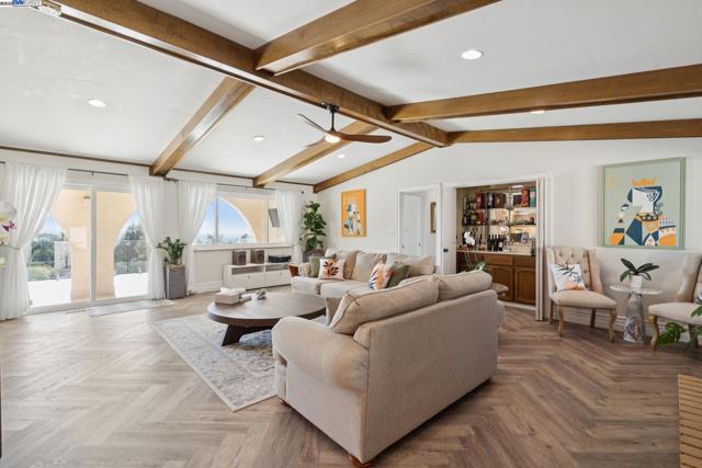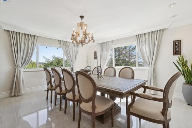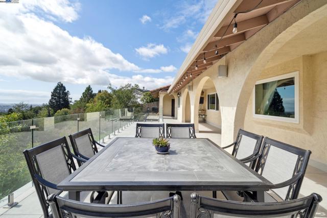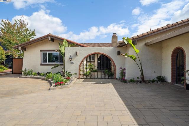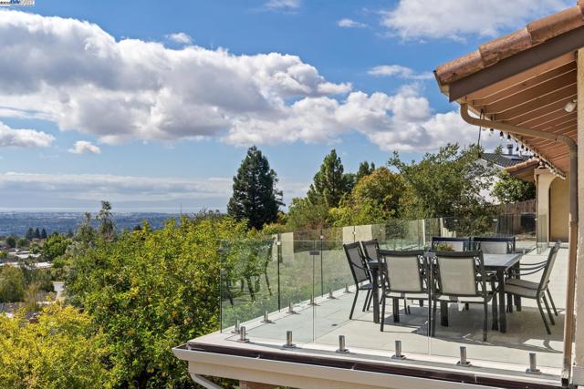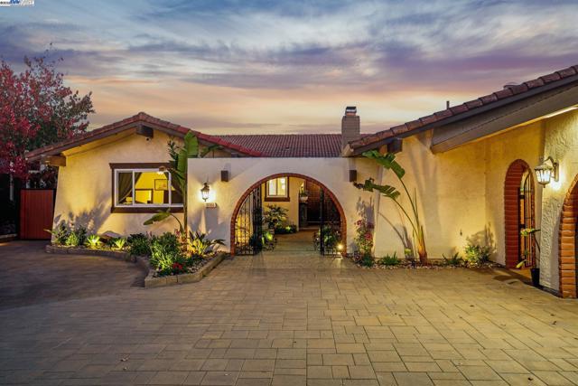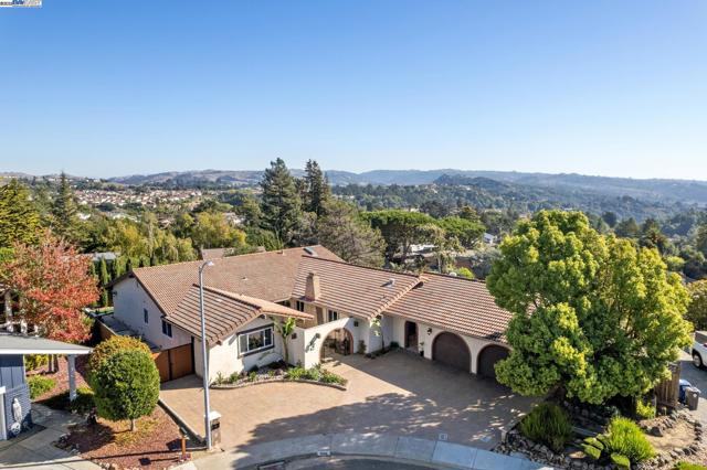 Situated high atop the East Bay Hills, you'll find this amazing Mediterranean Villa tucked away in a quiet cul de sac in Castro Valley's coveted Greenridge neighborhood that will absolutely blow your mind. Gorgeous 4 bedroom, 2 and 1/2 bath single level abode of over 3,100 square feet with stellar views to the east, south and west including panoramic views of the Bay and Peninsula. You enter the estate via an enchanting courtyard with double door entrance that leads you into the elegant sunken living room with high ceilings, recessed lighting, and gleaming tiled floors. There's a separate dining room, living room with wood burning fireplace, and a gorgeous remodeled kitchen with designer appliances, quartz countertops, and tons of storage. Other updates include new flooring, new double pane windows, a remodeled bath, and a remodeled wraparound deck with tile and glass panels. Need parking? There's a massive 2 car garage with automatic doors and vestibule connection to the main house, as well as a secured side area that can easily hold an additional 2 cars, trailer, or small boat. All this on a massive half acre lot that already has an approved parcel split that's been paid by the seller that you can use for another structure, ADU, or sell separately later without an easement.