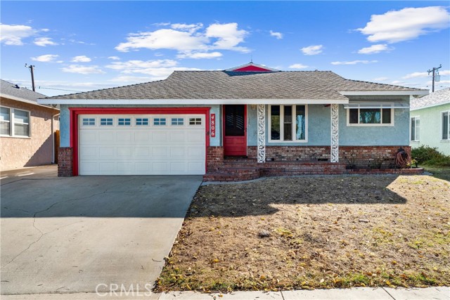 Welcome to this charming and generously sized home located in the desirable city of Lakewood. As you arrive, you're greeted by a lovely mature tree in the front yard and a cozy front porch—perfect for relaxing and enjoying the neighborhood. Step inside to a warm and inviting living room. To the right, you'll find two nicely sized bedrooms with a full bathroom conveniently situated between them. Just behind the living room is a spacious kitchen that opens up to an expansive great room featuring a classic brick fireplace and soaring vaulted ceilings—ideal for entertaining or relaxing with family. Tucked away at the back of the home, to the right of the great room, is the private primary suite complete with a full en-suite bathroom, offering a peaceful retreat. From the great room, sliding doors lead out to a covered back patio—perfect for outdoor dining or simply enjoying the fresh air. The backyard also includes a handy shed for extra storage. The home does need a little TLC, making it a great opportunity to add your personal touches and build equity. With a solid layout and great bones, this property is just waiting for someone to make it shine. The home also features a 2-car attached garage, a giant attic and is conveniently located near retail stores, restaurants and major freeways, making for an easy commute. Don't miss your chance to make this wonderful Lakewood habitat your own!