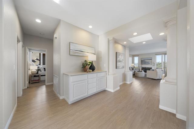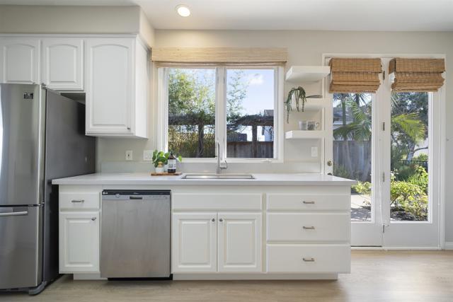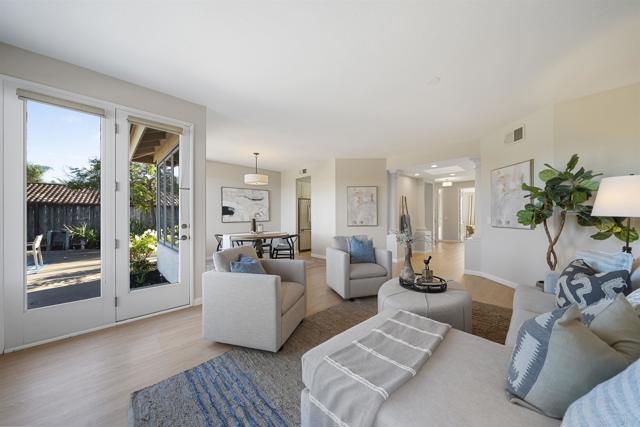 Welcome to your dream home at 1801 Amalfi Dr, nestled in the exclusive gated community of Monte Mira in beautiful Encinitas, CA. This single-story gem boasts two spacious bedrooms, two luxurious bathrooms, and an office/den with spectacular views, all within approximately 1,860 square feet of meticulously designed living space. The home seamlessly combines classic charm with modern amenities. As you step inside, you're greeted with breathtaking panoramic views of the lagoon, valley, mountains, and even partial ocean scenery from the den, kitchen, and side yard. The kitchen has been tastefully updated, featuring elegant travertine finishes and top-of-the-line stainless steel appliances. Situated on a nearly 10,000-square-foot lot, this property features an expansive outdoor oasis, ideal for entertaining or unwinding. The spacious back patio comes equipped with trellises, a cozy fire pit, sitting walls, and beautifully maintained gardens, creating a serene escape right in your backyard. With its stunning views and prime location, this home is a rare find in the sought-after Encinitas area. Welcome Home!
