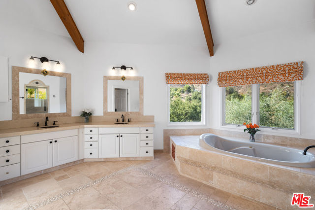 Malibu Retreat with forever mountain views and surrounded by open space! This private mountain oasis exudes the ultimate in tranquility. Almost 2 acres and adjacent to 160 acres of State Park land. There are easy and endless hiking and riding opportunities available. Gated and secluded, yet only 10 minutes to the beach, 15 minutes to Westlake/Thousand Oaks, and 15 minutes to Malibu's shopping and restaurants. 3 bedrooms, children's "playroom", 3.5 baths, large living room with fireplace and loft, gym with steam shower, infrared sauna, huge primary suite, oversized 3-car garage, with workshop/storage area, fruit trees, cactus garden, greenhouse, oak trees and seasonal stream. This home is essentially "off the grid" with solar, Tesla batteries, and well water. Separate and fully-equipped 2 bedroom, 1 bath private/detached guesthouse with 500 SF of deck available for an additional amount. Property is also for sale.