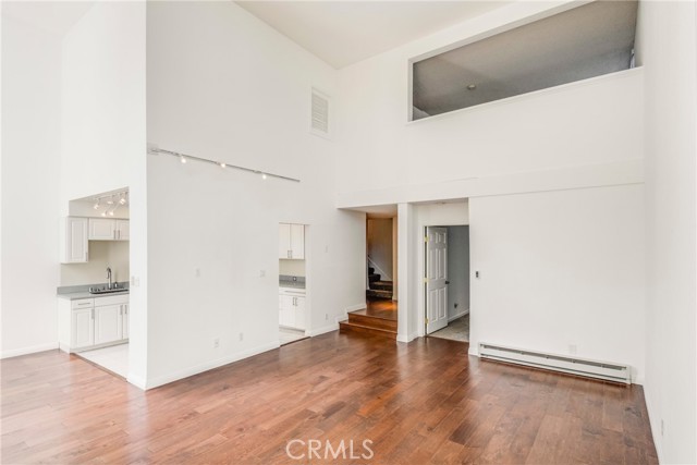 This two-story townhome-like end unit features two bedrooms, 2 bathrooms. Spacious light-filled living room and dining room with soaring ceilings, fireplace, patio off living room. Hardwood floors, carpeting. The kitchen includes a stainless steel refrigerator and stove/range, generous cabinet storage. The first floor has one bedroom with double closets; 3/4 bathroom. The top level features a loft bedroom with lattice, large walk-in closet, full bathroom, and laundry closet with washer/dryer. Home features an energy efficient Daikin unit - for cooling & heating comfort. Subterranean tandem parking for 2 cars. Storage cabinet is located in the community closet. Located in the "heart of the Peninsula", this Peacock Ridge complex is located at the end of the cul-de-sac. Common area entry, a heated pool and spa. Ideal, convenient location near Peninsula Center, shopping, restaurants, schools.