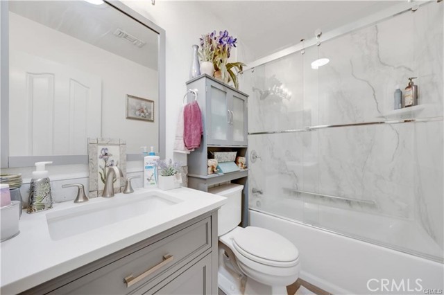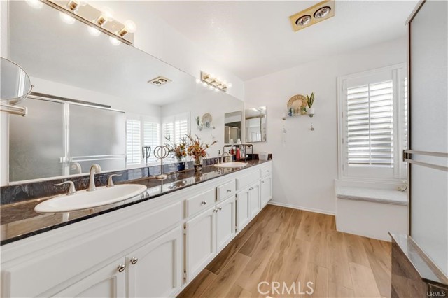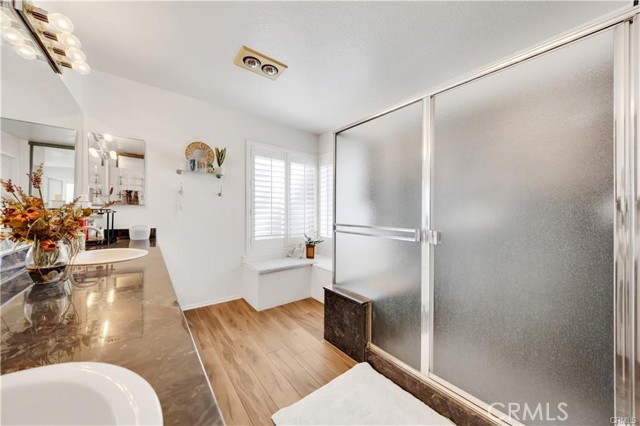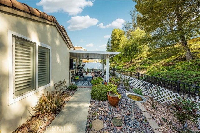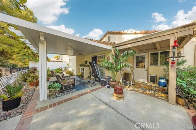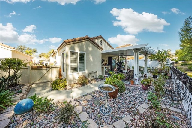 Experience resort style living in The Colony, a premier 55+ community. This rare two bedroom plus office floor plan offers privacy with no neighbors behind you. A gated entrance welcomes you into a peaceful courtyard that wraps around to a serene backyard patio with low maintenance landscaping, an alumawood patio cover with dimmable LED lights, and an outdoor ceiling fan. Inside, the open layout is filled with natural light from skylights and solar tubes, featuring vaulted ceilings, recessed lighting, ceiling fans, and wood floors in the living and dining areas. A warm fireplace and built-in cabinets create an inviting atmosphere. The updated kitchen features wood grain tile flooring, modern appliances, and plantation shutters. The breakfast nook includes a built-in dining booth with storage. The remodeled hall bath showcases porcelain tile floors, a soaker tub and shower combo, a new vanity, upgraded fixtures, and a solar tube for added light. The master suite offers a relaxing retreat with wood floors, vaulted ceilings, a ceiling fan, plantation shutters, a walk-in closet, and an upgraded bath with granite countertops, porcelain tile floors, a walk-in shower, and a window seat with storage. The second bedroom includes LVP flooring, plantation shutters, a remote LED ceiling fan, and a walk-in closet. An additional office space features wood flooring, built-ins, a vaulted ceiling with skylight, and direct patio access through a retractable screen door. The garage includes built-in storage, LED lighting, and a pull-down attic door for extra space. Energy efficient upgrades include solar panels, dual pane windows, and a whole house fan for lower energy costs. The Colony is a guard gated community offering top amenities including pools, tennis, golf, social clubs, and organized activities. Seller offering a 1% interest rate buydown for the buyer, subject to cross qualification with the seller’s agent and lender approval. Great opportunity to reduce your monthly payment.