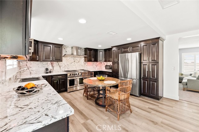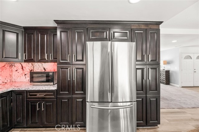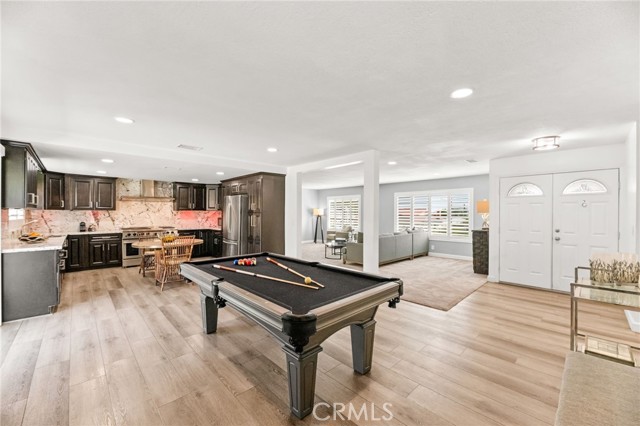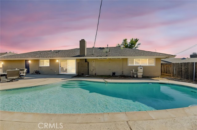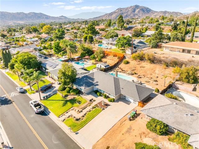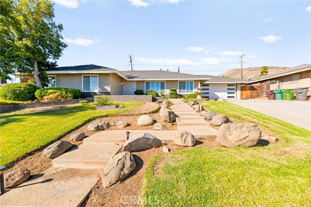 This beautiful pool home offers the best of comfort and style in a beautifully updated five-bedroom single-story design, perfectly positioned in a quiet Moreno Valley neighborhood framed by mountain views. Step inside to a bright and inviting living space where vaulted ceilings and large windows fill the home with natural light. A cozy fireplace anchors the living room, creating a welcoming atmosphere for family gatherings or relaxing evenings. The kitchen combines elegance and function with rich granite countertops, stainless steel appliances, and custom cabinetry that offers abundant storage. It opens seamlessly to the dining and living areas, making it ideal for entertaining or everyday family life. Each bedroom provides generous space, with the primary suite offering a peaceful retreat complete with an updated bath and views of the backyard. Thoughtful upgrades, including new flooring, lighting, and modern finishes, give the home a fresh, refined feel throughout. The backyard is your own private escape, featuring a sparkling pool surrounded by mature landscaping and plenty of room for outdoor dining or play. The finished epoxy-coated garage extends the living potential—perfect for a home gym, workshop, or creative studio. The expansive lot also provides RV parking and additional storage options. Located near Sugar Hill Elementary and Palm Middle School, this home offers easy access to shopping, dining, and the 60 freeway. Lake Perris and local hiking trails are just minutes away, adding convenience and adventure to everyday living. Whether you’re raising a family or looking for a stylish retreat, this home delivers the perfect balance of luxury, practicality, and California lifestyle charm.