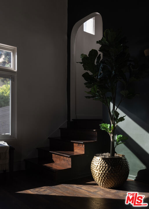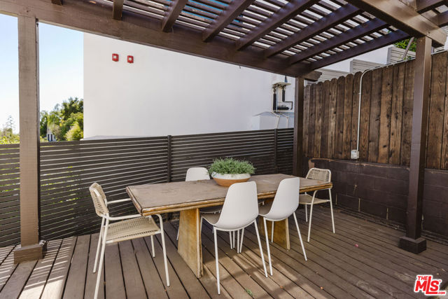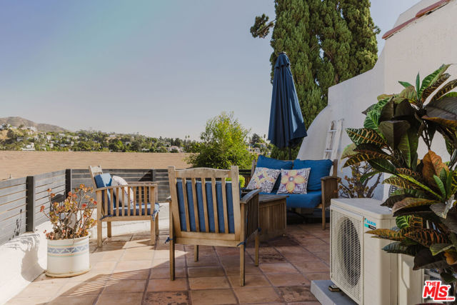 Immersed in the fabric of Los Angeles, this hillside Mediterranean jewel offers numerous lounging decks and rooftop terraces with views of iconic landmarks. This storied duplex comprises both 2039 and 2041 Glencoe Way and was previously owned by Theo Wilson, a trailblazing journalist for the Los Angeles Times and New York Times. Experience a dreamy, enchanting lifestyle that only a home of this original character can provide, with rich period aesthetic details preserved inside and out. Vivid color complements moody hues to inspire deep thought and creativity. At 2041, enjoy authentic Spanish terra cotta tile floors, stucco fireplace, and built-ins in the delightful living room with French doors that open to the front patio. The kitchen is warm and inviting with a subway tile backsplash, aegean blue cabinetry, stainless-steel appliances, and bar ledge. The formal dining room, with its rich wood floors, also has French doors to the outside. A wrought-iron staircase leads to the primary bedroom with picture windows framing sweeping views of the city, and secondary bedrooms and bathrooms have built-ins and period details. One of the bedrooms has its own private entrance, offering added flexibility and privacy. There is also an office/gaming room with vaulted ceilings with exposed beams surrounded by striking vistas of treetops and hillsides. The living room of 2039 features an original 1926 brick fireplace, entertainer's bar, charming bookcase, and lofty ceiling with exposed beams, with direct access to a spacious patio perfect for outdoor gatherings. The eat-in kitchen has been extensively and beautifully updated with copper hardware, open shelving, bright subway tile backsplash, an abundance of cabinetry, and top-of-the-line appliances. The primary bedroom has a large skylight, French doors opening to a rooftop lounging deck, an adjacent sitting alcove with picture window, and en-suite bathroom. The secondary bedroom, currently used as an office, offers direct access to the outdoors and features its own en-suite bath. Relax, entertain, and dine al-fresco from multiple tiered patios, screened for privacy from the street, including a trellis-covered outdoor dining room with views of the hills and city. Both addresses include covered parking and an in-unit laundry. Live in one and rent out the other for a steady flow of passive income. The Hollywood Bowl is also close by, with no need for ride-share or transportation. 2039 is Luxury Exempt and therefore not subject to the limitations of rent control. Within the last five years, many updates have been made throughout; both addresses have newer water heaters, water filtration systems, and HVAC. New doors and windows come with a transferrable 10-year warranty. 2041's upgrades include a newly installed EV charging station and kitchen appliances (three years), and 2039's kitchen has updated flooring, cabinetry, lighting, and appliances (two years). Welcome!