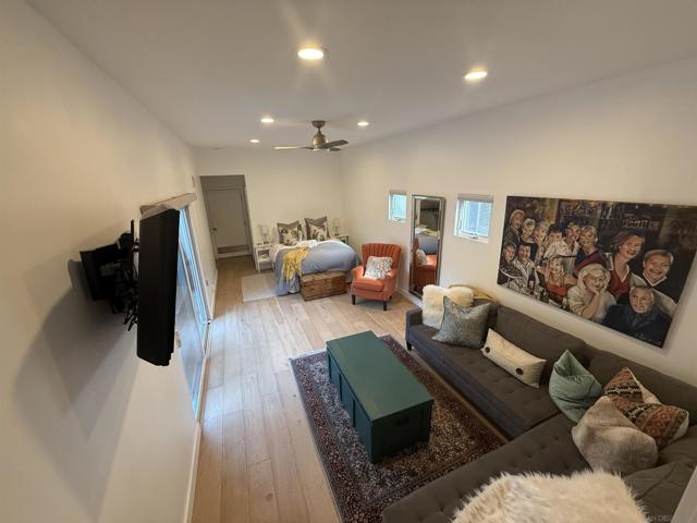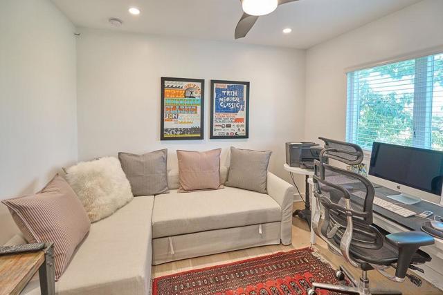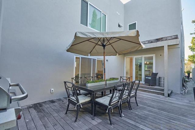 Modern 4BD fully furnished for DEC 1 Move in (30-day minimum). Flexible short term lease terms. AC, 6-Seater Golf Cart. Open Concept living room, dining room, and kitchen. All high-end Stainless-Steel kitchen appliances. Large Roof top Patio Deck with BBQ. Hot water outdoor shower. Includes all furnishings and linens. Two primary suite bedrooms. Enjoy BBQ-ing on your OWN PATIO DECK with Gas BBQ and dining set! And can't forget - ACCESS TO A LARGE ROOFTOP DECK WITH VIEWS OF DOWNTOWN!! Home also INCLUDES access to a 6-SEATER GOLF CART, OUTDOOR SHOWER WITH HOT WATER, and Beach accessories! THIS RENOVATED HOME HAS IT ALL: an OPEN-CONCEPT floorplan connecting a very SPACIOUS living room, dining room, and kitchen! Featuring GAS FIREPLACE, mounted TV with streaming capability, dining table seats 6, and wet bar with wine fridge! In addition, the kitchen boasts top–of–the–line stainless steel appliances plus an oversized kitchen island great for gathering around! Off the kitchen is the one of the two primary bedrooms - the downstairs primary is unique with own patio access plus it includes a smart TV, seating area, queen bed, wet bar and ensuite with walk in shower! The second floor features three bedrooms. The first bedroom has two single beds and a built-in closet -- great for organizing all your vacation outfits! The second bedroom doubles as a home office with an optional queen-size pull-out day bed that makes it perfect for overflowing sleeping space when needed. Down the hall is the PRIMARY BEDROOM featuring a KING-SIZED BED and ACCESS TO A LARGE PRIVATE BLACONY! It features a GORGEOUS ensuite with LARGE DOUBLE VANITY with LED mirrors—as well as a LARGE SOAKING TUB, walk-in shower, and smart Toto toilet! Attached is a LARGE WALK-IN CLOSET! Home conveniences INCLUDE: - 6-SEATER GOLF CART - OUTDOOR SHOWER with HOT WATER - One assigned parking spot in the alley - Gas BBQ - Patio with dining table set and umbrella - Air Conditioning - In-home Washer and Dryer - Smart TVs - Ceiling Fan in each bedroom - LARGE PRIVATE Rooftop with Views of Downtown - Enclosed Front yard - Balcony off of the principal bedroom - All linens/housewares are included - High end kitchen Appliances - Access to beach accessories