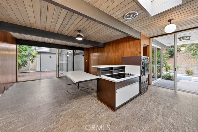 Step into iconic California living with this beautifully preserved mid-century modern home, thoughtfully designed by famed architects A. Quincy Jones and Frederick Emmons. This expansive five-bedroom residence celebrates light, space, and design with its signature open-beam ceilings, walls of glass, and seamless connection to nature. At the heart of the home lies a tranquil private atrium — an ideal setting for morning coffee, quiet reflection, or evening gatherings. The primary suite opens to a lush, park-like backyard that extends the living space outdoors, perfect for relaxation or entertaining under the California sky. Positioned at the end of a peaceful cul-de-sac on an oversized lot with no rear neighbor, the property offers a rare sense of privacy and retreat. Experience the timeless sophistication of mid-century modern living — where thoughtful architecture and natural beauty create a lifestyle that feels both refined and restorative.