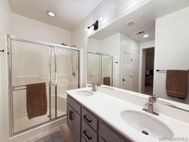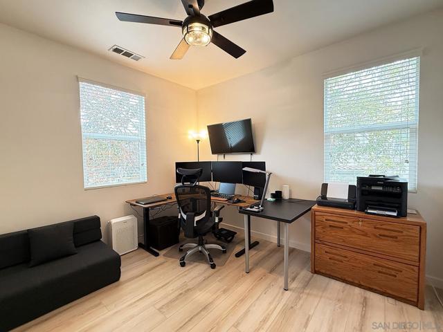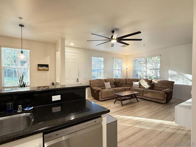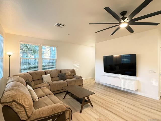 This beautiful 3-bedroom townhome from 2007 with an attached 2 car garage is set in a lovely environment overlooking a greenbelt and play area. Part of the Santa Fe Walk HOA this Highly upgraded and modernized home features lighted ceiling fans, numerous lights on dimmer, an updated kitchen and new luxury vinyl flooring throughout. With a sunny exposure and an adorable patio open to the greenbelt you'll fall in love with this little gem. It also boasts a great walkability score—Downtown Vista, with its restaurants and farmers market, is just a short stroll away, and the train station to Oceanside is nearby.