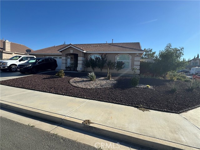 Stop the car! This home is a must see. Located in Victorville is a spacious 4-bedroom, 2-bathroom, 3 car garage home situated on a corner lot. As you drive up, you can't help but notice the low maintenance landscaping and the pride of ownership that is on display. While walking up to this home you are greeted by a lovely front porch perfect for a morning cup of coffee. Upon entering, you have your spacious dining room to your left which flows into your large formal living room. The tall ceiling height and accent columns add to the grandeur of this home. Proceed to your left and you will enter your spacious family room with a double-sided fireplace perfect for those cozy nights. Your large kitchen with plenty of cabinet space and a dining area overlook your family room which is perfect for entertaining. Walk to the west side of the home and you arrive at your indoor laundry room. Continue and you will enter the large primary bedroom with an ensuite bathroom and spacious walk-in closet. Down the hallway is your guest restroom and three large bedrooms with ceiling fans. The backyard is ready for you to enjoy with a covered patio, low maintenance landscaping and small fruit trees. This home won't last long. Schedule your showing today.