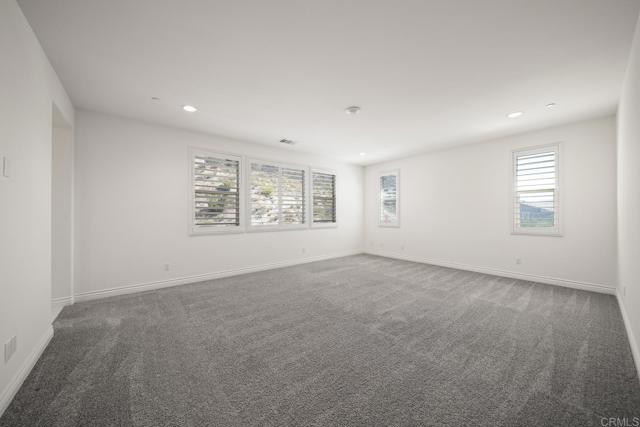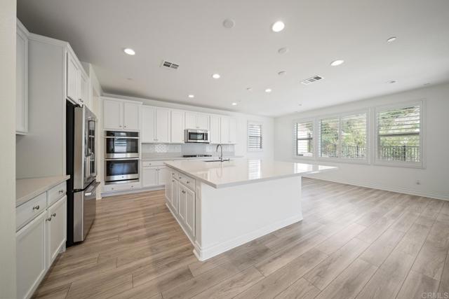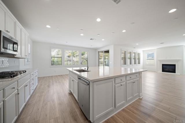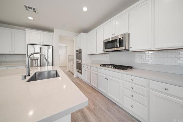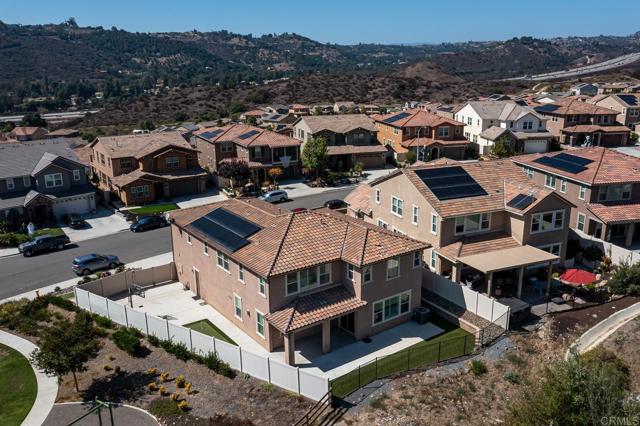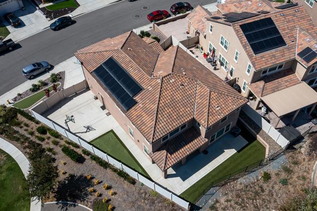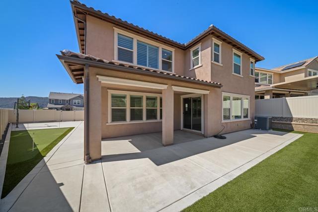 Welcome to one of the largest homes in the Promontory neighborhood of Horse Creek Ridge. This expansive 3,844 sq ft residence offers 5 bedrooms, including 4 with ensuite baths, 6 bathrooms, a spacious upstairs loft, and thoughtful upgrades throughout. Inside, the gourmet kitchen features GE and Café appliances, quartz counters, custom cabinetry, a stylish backsplash, and a butler’s pantry — perfect for everyday meals and entertaining. The open-concept family room with fireplace flows into the large dining space, while luxury vinyl plank flooring and plantation shutters add elegance throughout the first floor. This home also comes with a fully paid 5kW solar system, a two-car garage with tandem space, and rare expanded parking behind a fenced area along with a three-car driveway. Step outside to a private courtyard, drought-tolerant landscaping, and a custom putting green — an entertainer’s dream and golfer’s delight. Living in Horse Creek Ridge means enjoying 7 private parks, a clubhouse with pool and spa, nearby hiking trails including the Monserrat Mountain Trailhead, and a true community feel. With easy I-15 access, you’re just minutes from Fallbrook, Bonsall, and Temecula. Don’t miss this opportunity to own one of the premier homes in Horse Creek Ridge.