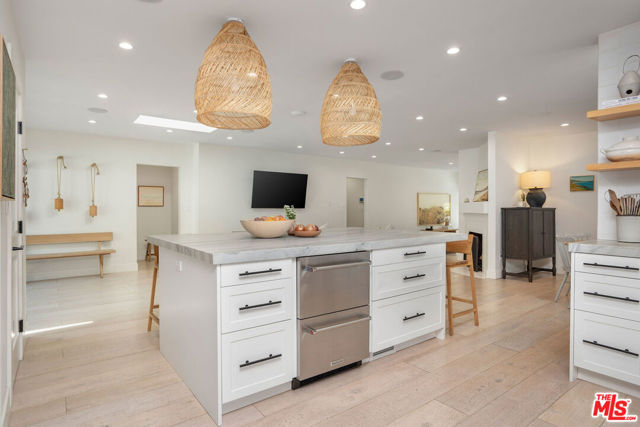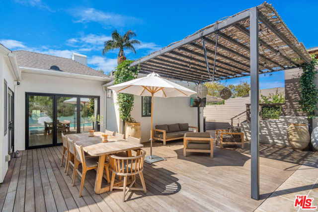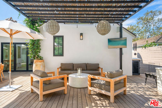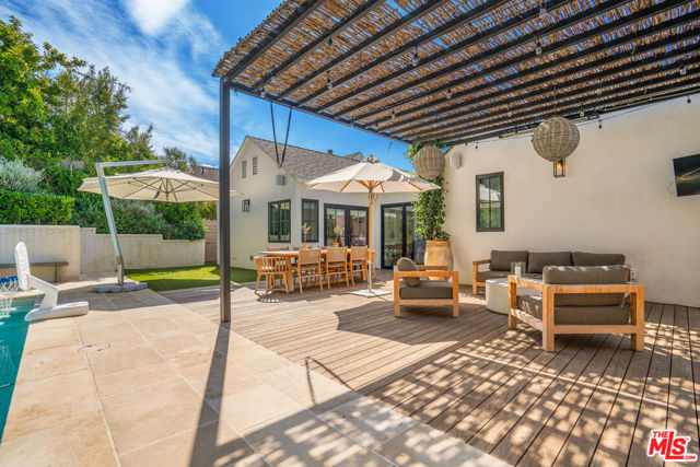Situated on a beautiful tree-lined street in prime Cheviot Hills, this three bedroom, four bathroom designer-done home is the one you have been waiting for. The meticulous attention to detail combined with its style and sophistication make this recently remodeled residence a truly special property. The front entry leads to a large light-filled living room, complete with a double-sided fireplace, which flows perfectly into the elegant dining room. The chef's dream kitchen features a huge center island with seating for at least six people, custom cabinetry and floating shelves, quartzite countertops, farmhouse sink, spacious pantry, and top-of-the-line stainless steel Thermador appliances including a double oven, six-burner gas cooktop, built-in refrigerator/freezer, and double beverage refrigerator. The large breakfast area in the kitchen is ideal for everyday casual dining, yet spacious enough to host a large gathering with family and friends. Off of the kitchen, the family room's LaCantina bifold doors open completely from wall to wall and welcome you and your guests to an entertainer's dream backyard, highlighted by a spacious patio, covered pergola, maintenance-free turf, art studio, and an incredible pool and spa. The primary bedroom suite is the perfect space to relax and unwind and its spa-like ensuite bathroom with dual sinks, custom vanity, and oversized shower finishes the elegant space. Two generous-sized guest bedrooms, office, laundry room, and finished garage with wood floors and a sauna complete this remarkable home. Perfectly located in the heart of Cheviot Hills near Fox Studios, the Griffin Club, Rancho Park golf course, and world-class shopping and dining at Westfield Century City. A truly special offering, rarely does a fully remodeled and move-in ready home become available in this neighborhood.