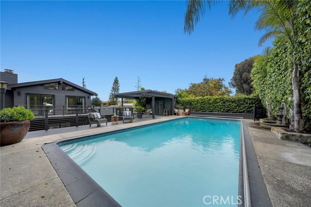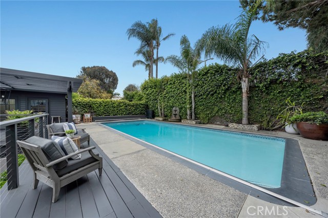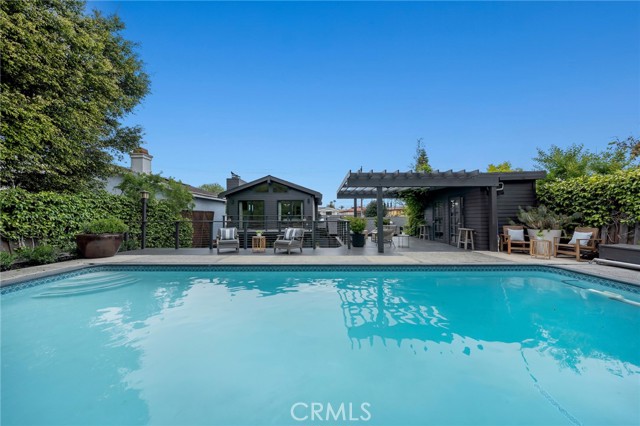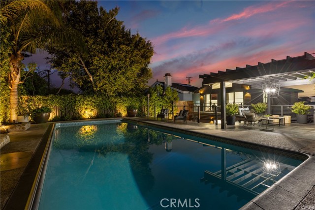 A beautifully furnished, designer turnkey residence – ready to move in with flexible lease options. Experience refined coastal living in this luxury executive rental, showcasing abundant outdoor spaces and an oversized swimming pool. This private oasis is located in the prestigious Manhattan Beach Hill Section, offering walkability to downtown and award-winning beaches. Wrapped in mature trees and tall hedges on a spacious 7,500+ sq.ft. lot, the property is an entertainer’s paradise with four distinct outdoor living spaces. The level of privacy, combined with designer finishes and thoughtful details, makes this home one of a kind. From the moment you pass through the charming front gate, you’ll be drawn in by manicured grounds, lush landscaping, and a welcoming front porch that sets the tone for the elegant spaces within. Inside, the home opens to an ideal layout with soaring ceilings, new windows and doors, and natural hardwood floors that flood the space with warmth and light. The chef’s kitchen is a dream for culinary enthusiasts—equipped with top-of-the-line bespoke appliances, custom cabinetry, a massive island with bar seating, and abundant light from skylights. The open-concept design seamlessly connects the kitchen, dining, and living areas, creating an inviting flow for entertaining or everyday living. The serene primary suite occupies its own private floor and feels like a true retreat, featuring a spa-inspired ensuite, dual walk-in closets, soaking tub, steam shower, and a tranquil balcony overlooking the pool. Downstairs, a secondary living space with a fireplace opens directly to the outdoor entertaining areas. Step outside to multiple levels of outdoor living surrounding the rare large, deep pool—perfect for gatherings or peaceful lounging. A detached pool cabana with bathroom, shower, and bar area adds convenience and comfort. Additionally, a freestanding 1-bedroom, 1-bath guest house doubles as a gym, art studio, office, or garage, offering adaptable space to suit your lifestyle. Features include air conditioning, NEST home system, whole-house water filtration, and meticulously curated finishes. With a Walk Score of 84, this “very walkable” location puts you minutes from downtown Manhattan Beach, pristine beaches, Blue-Ribbon schools, fine dining, and boutique shopping. This is not just a home—it’s a tranquil lifestyle. A private retreat. An entertainer’s dream.