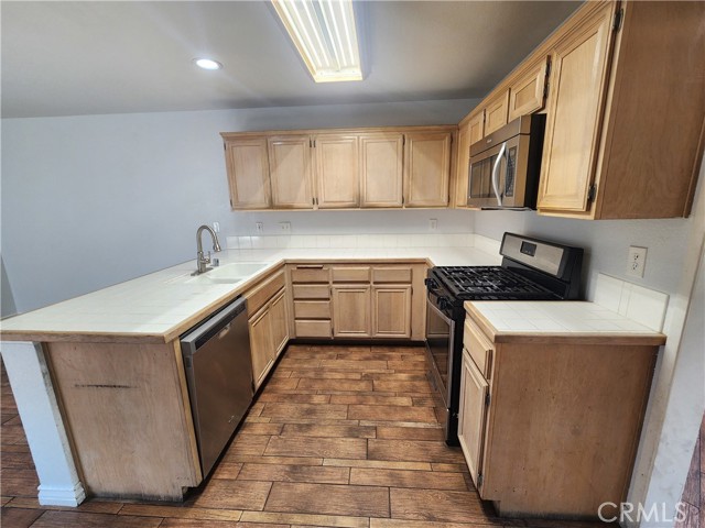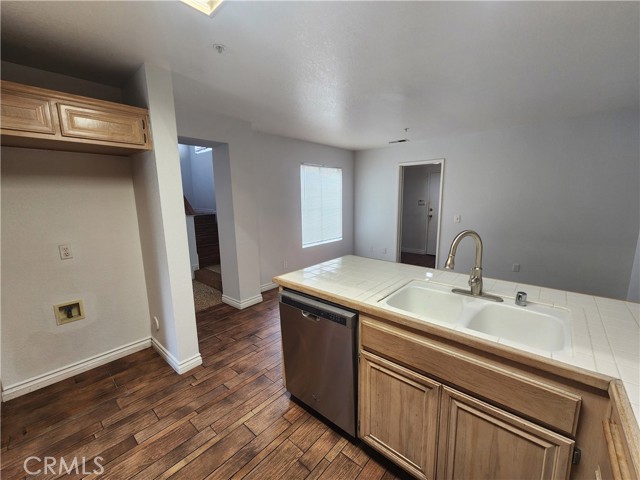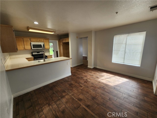 This 3-bedroom, 2.5-bathroom and 2 car attached garage Condo is now available. Wood flooring throughout. Kitchen has tile counter tops, a bar top area perfect for bar stool seating and includes stove-top/oven, microwave and dishwasher appliances. Living room features a decorative fireplace. Convenient half bathroom downstairs. The laundry room includes washer and dryer connections only. The primary bedroom has 2 closets and private bathroom with dual sinks. The other 2 bedrooms are very spacious and offer plenty of closet storage space. Community pool available. This property is located near the 210 freeway, Victoria Gardens, restaurants, grocery stores and many shopping plazas.