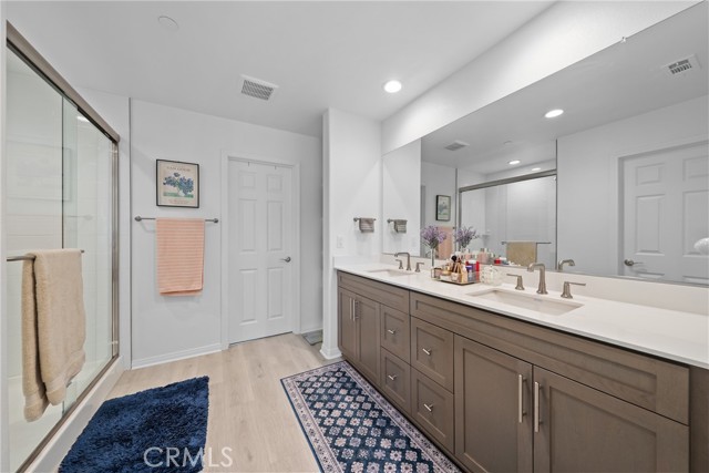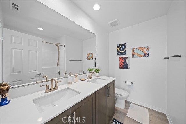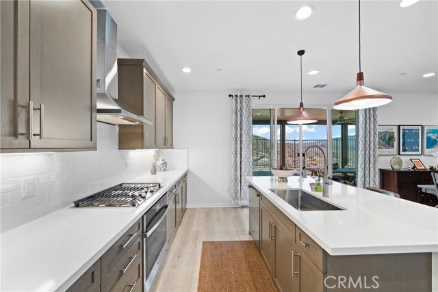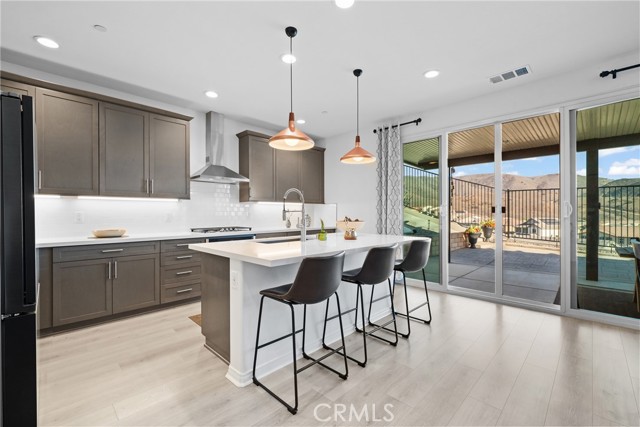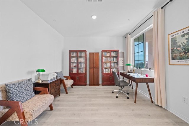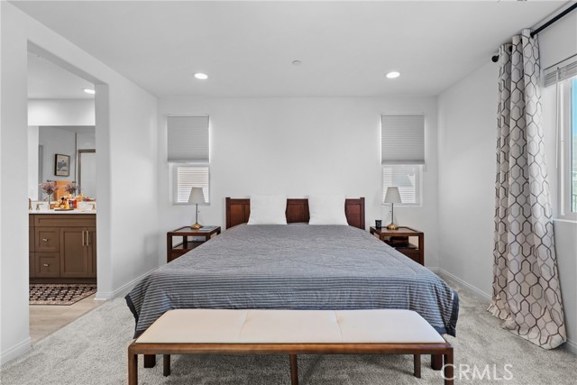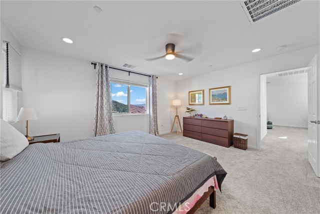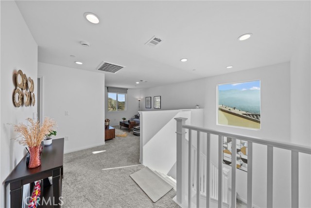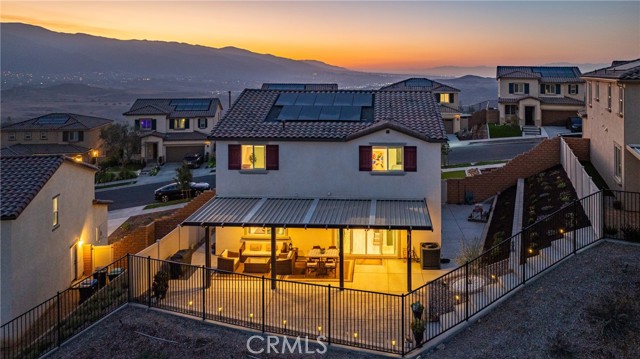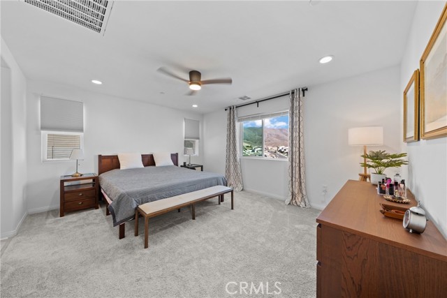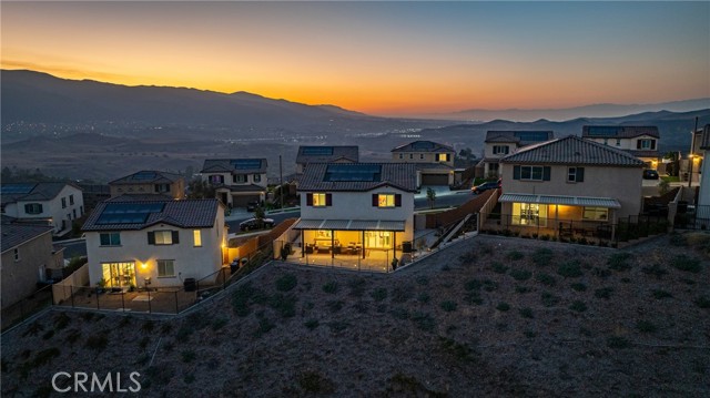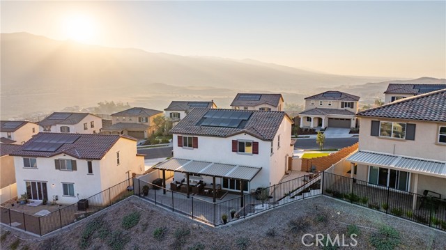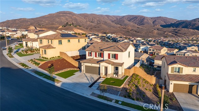 BETTER THAN MODEL HOME,ONLY ONE YEAR NEW!!! Located in a prestigious gated community with breathtaking city and mountain views, this stunning home sits on a premium view lot. The owners spent over $60,000 creating a professionally landscaped front and backyard filled with vibrant flowers, lush plants, and decorative mulch, plus epoxy-coated flooring on both the garage and front porch. The spacious side yard offers extra outdoor living space with open scenic views. Inside features an elegant study off the entry, a spacious great room, and a gourmet kitchen with maple cabinets, quartz countertops, a large center island, walk-in pantry, and adjacent dining area. Upstairs includes a cozy loft with beautiful view, an exceptional primary suite with additional windows, a generous walk-in closet, and a private bath, along with two secondary bedrooms each with their own walk-in closets, and a shared hall bath. The laundry room is conveniently located upstairs with sink pre-plumbing. Every room features ceiling fans, and the home has been meticulously maintained in spotless condition. Residents enjoy a resort-style clubhouse with pool, spa, BBQ area, fire pit lounge, and dining/entertainment spaces. Close to Orange County and within a top-rated school district, this home perfectly combines luxury, comfort, and stunning views.