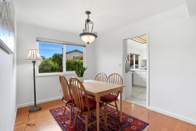 Desirable Silvergate neighborhood with TOP-Rated schools. 5 bedrooms and 3.5 bathrooms with all engineered hardwood floors. Remodel the kitchen countertop, brand new dishwasher. The downstairs has 1 bedroom, a full bathroom, and another half bathroom perfect for guests, parents, or a private home office. 4 bedrooms and 2 full bathrooms are upstairs. The backyard is filled with mature fruit trees. This home offers quick access to shops, dining, BART, and both 580/680 freeways—an ideal combination of convenience, community, and move-in readiness. Solar is financed
