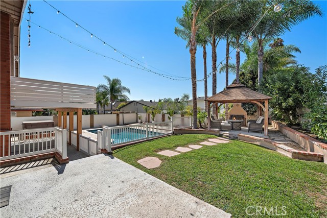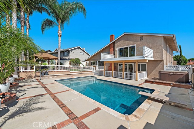 Welcome to Your Mission Viejo Oasis in Aegean Hills! Step into this beautifully updated home in the tranquil Aegean Hills community, where soaring cathedral ceilings and an abundance of natural light create an open, airy feel from the moment you walk in. With four spacious bedrooms and three updated bathrooms, this home offers comfort and flexibility for families of all sizes. A main-level bedroom provides convenience for guests or a home office, while the dedicated laundry room adds to everyday ease. Upstairs, the primary suite is a true retreat—complete with a private deck perfect for morning coffee or evening relaxation. Two additional oversized bedrooms also feature deck access, inviting you to enjoy Mission Viejo’s signature sunshine year-round. Outside, the entertainer’s backyard is your personal paradise. Surrounded by lush tropical palms and mature lemon, avocado, and peach trees, the space features a sparkling pool, above-ground spa, and a cozy gazebo with fireplace—ideal for hosting or unwinding. The gated pool area ensures peace of mind for families with children, while the meticulously maintained landscaping sets a beautiful backdrop for any occasion. Energy-efficient solar panels help keep utility costs low, and the home’s prime location offers easy access to local shops, restaurants, parks, and the 5 Freeway—all while enjoying the peaceful ambiance of Aegean Hills. Discover the perfect blend of comfort, style, and California living—welcome home!