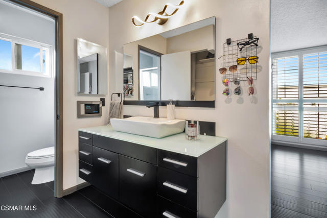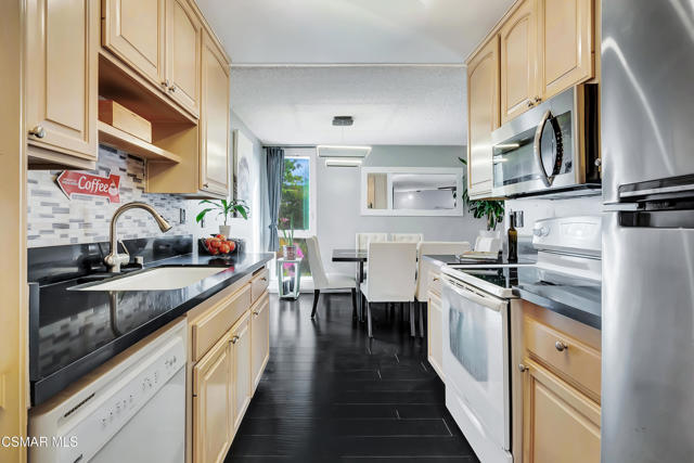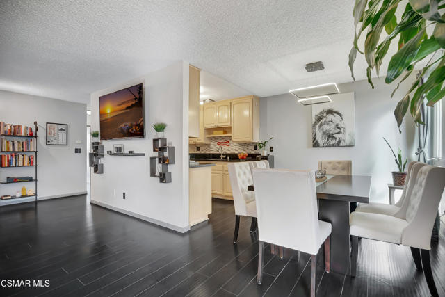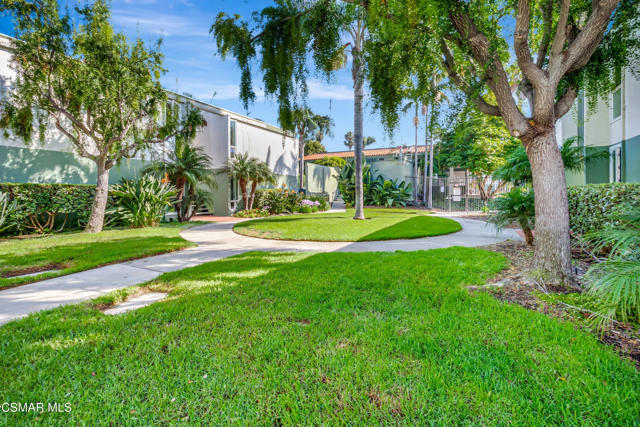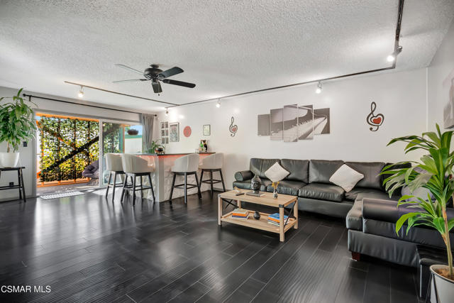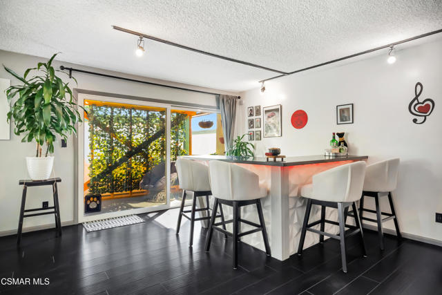 This beautifully updated two-bedroom, two-bath upstairs corner unit offers a perfect blend of comfort, privacy, and modern living in a peaceful garden-style community. Wood-like floors flow seamlessly throughout the home, creating a warm and cohesive feel. The bright and airy living space opens to a private balcony, providing the perfect setting to unwind or enjoy Ventura's coastal breeze.The kitchen connects smoothly with the main living area, and a custom-built bar serves as the home's true centerpiece. Designed for entertaining, it features sleek under lighting, matching bar stools, and a built-in underbar mini fridge--ideal for hosting gatherings or enjoying a quiet evening in style.Additional upgrades include a keyless smart lock, LED lighting, USB-equipped outlets, smart thermostats, and a Samsung SmartThings hub with Google Home displays. The primary bathroom features a floating vanity with a vessel sink, while in-unit laundry offers everyday convenience. A new water heater installed in 2024 provides added peace of mind.As a top-floor corner unit, this home enjoys extra privacy and a quiet atmosphere. One parking space and one garage space are included. The Buena Ventura Gardens community features beautifully maintained grounds, a pool, spa, and clubhouse, and covers water, gas, and a water softening system.The location is exceptionally convenient--just minutes from Cafe Ficelle, Target, Trader Joe's, Ventura College, and Pacific View Mall. With easy freeway access and the beach only a short drive away, this home places the best of Ventura's lifestyle right at your doorstep.