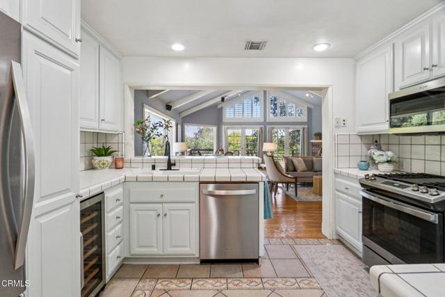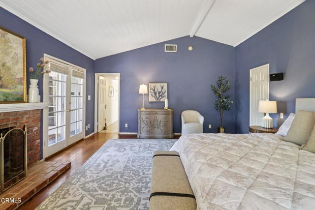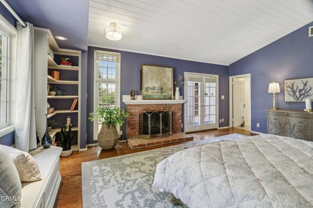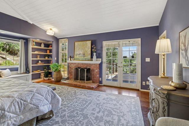 Located in the highly sought after Linda Vista neighborhood, this private single-level home offers 3 bedrooms, 2.5 baths, and approximately 2,460 sq ft of living space on a 20,000+ sq ft lot. Behind gates, a long driveway leads past a waterfall and pond to a peaceful setting surrounded by mature landscaping and mountain views. The living room features vaulted ceilings, hardwood floors, a brick fireplace, and French doors opening to a view deck. The adjoining dining/family room has a second fireplace and ample space for entertaining. The primary suite includes vaulted ceilings, built-ins, a third fireplace, and direct deck access. The kitchen offers newer stainless steel appliances, tile counters, and a breakfast nook. Outdoor areas include multiple decks, a grassy yard, spa, and garden pathways. Additional features: central air, laundry room, and oversized 2-car garage with workspace. Convenient to the Rose Bowl, Old Town Pasadena, and major freeways.