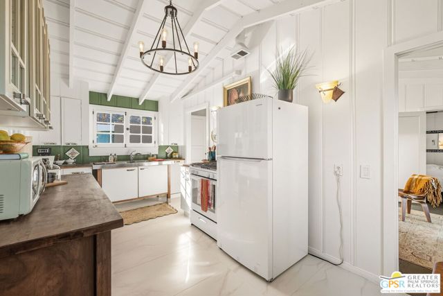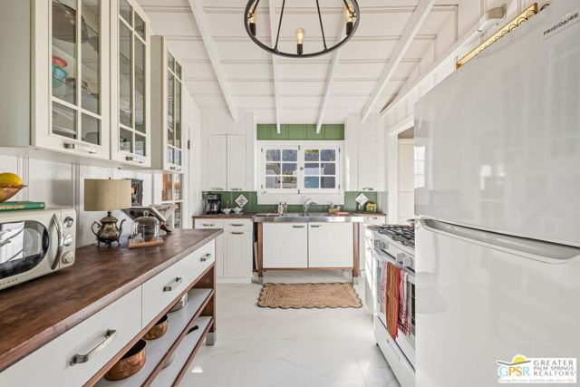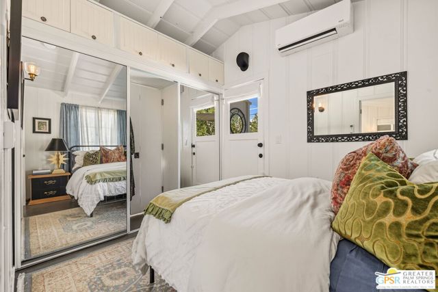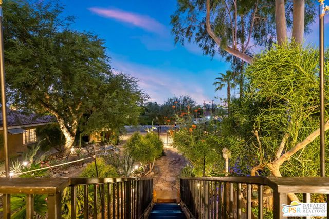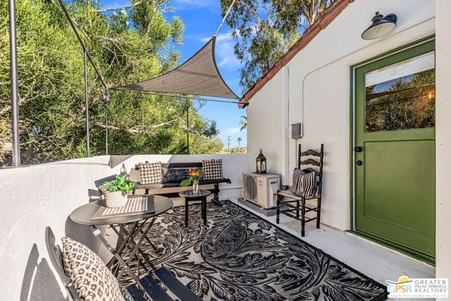 Built in 1936, this Spanish Colonial Style Ranch carries a rich and colorful history that captures the spirit of old Palm Springs. Once known as Casita de Sueos, it served as a Hollywood-inspired haven for the Los Compadres riding club and a lively meeting place for the cowboy culture of the 1930s. Horses from the famed El Mirador and The Desert Inn hotels once roamed here, and in later years, the property housed horses for the Palm Springs Police Department. During the mid-century era, it became a creative refuge for artists, including local surrealist painter Snake Jagger, and was beloved by the desert's thriving artistic community of the 1960s and 1970s. Set within a private gated enclave surrounded by stunning landscaping, this upper residence spans 1,278 square feet and offers two bedrooms and one bath. The home has been beautifully remodeled to blend timeless design with modern comfort, featuring new mini split systems throughout for personalized heating and cooling. Inside, natural light pours through large windows, framing picturesque mountain views and lush greenery. The kitchen is a thoughtful blend of character and function, featuring butcher block counters, glass-front cabinetry, and warm textures that echo the home's Spanish heritage. French doors open to a private terrace, where you can enjoy morning coffee or unwind beneath the palms as the sun sets behind the San Jacinto mountains. The grounds surrounding the home are truly extraordinary, lovingly curated by an owner with a passion for the desert landscape. Mature palms, flowering plants, and winding stone pathways create a setting that feels both peaceful and alive. The gardens are a living work of art, offering the perfect balance between serenity and vibrancy. Available furnished or unfurnished, this residence embodies everything that makes Palm Springs special: a timeless sense of style, rich history, and an intimate connection to the beauty of the desert.