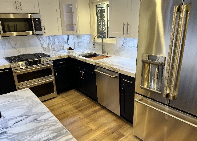 BRILLANT ATTENTION TO EVERY DETAIL OF REMODEL - LOCATED ON THE BLUFF OVERLOOKING THE OCEAN , SAND ,WAVES ,COASTLINE, SUNSET AND HARBOR VIEWS!! ATTACHED 2 CAR GARAGE WITH DIRECT ACCESS, SINGLE LEVEL CONDO . Coastal living at its best. Located on a rarely traveled cul-de-sac at the northern end of North Beach. This one level condo features unmatched stunning ocean views. Breathtaking sunsets , waves crashing on the sand, Harbor view so clear you can watch the sailboats . Easy access to steps to beach , 2.5 miles beach walking trail. San Clemente pier, restaurants, cafes, shopping, music, all close by. Serene, peaceful , cool ocean breeze . Open floor plan , enjoy the views as soon as you walk in the door. Private yard and patio to sit and enjoy Vibrant Sunsets year round . Private deck off the primary suite too. 2 car attached garage with direct access. SMART HOME- Alexa enabled voice operated lighting, and WIFI connected video garage . JUST A few of the New Features include : Brand new LG washer, dryer . Café WIFI connected appliances , Professional kitchen with hi-end cabinetry and porcelain counter tops - Gorgeous plank wood flooring throughout. Primary suite has the most beautiful custom built soaking bathtub and shower with a porcelain surrounding like you have never seen.