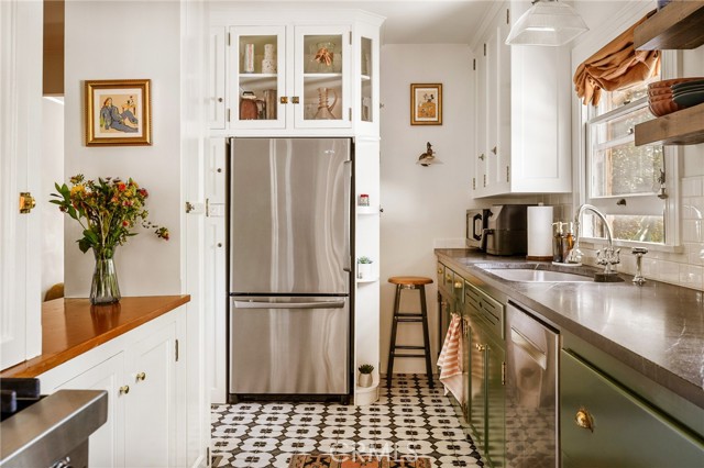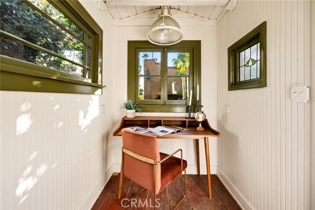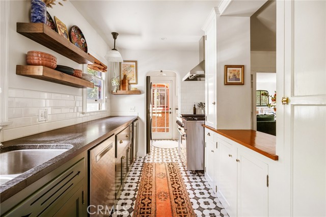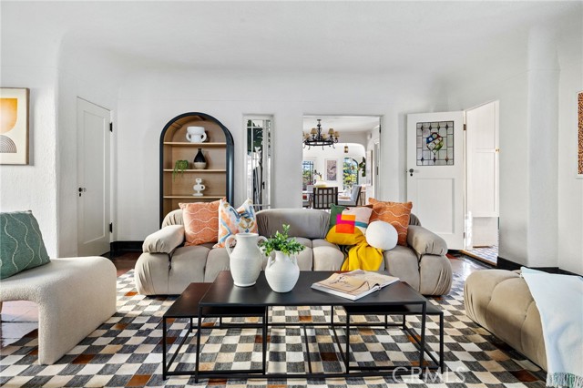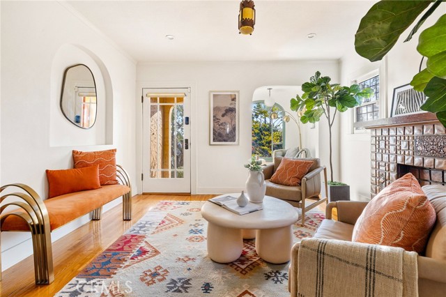 Welcome to “The Burrow,” a soulful bohemian escape that feels worlds away, yet sits just moments from the Silver Lake Reservoir, vibrant cafés, and eclectic shops. Originally built in 1922, this Spanish sanctuary has been lovingly reimagined with designer finishes and an inspired sense of style. Once home to the longtime curator of Frank Lloyd Wright’s Hollyhock House and Simon Rodia’s Watts Towers, the residence carries a rich creative legacy woven into every detail. Inside, layers of character and craftsmanship unfold. The formal living room opens seamlessly into an elegant dining area and an expansive family room anchored by its original CalCo tile mantel, creating an entertainer’s dream of openness and warmth. The bespoke kitchen blends form and function in perfect harmony, featuring Viking, Bosch, and Monogram appliances set against a backdrop of refined design. Every corner reveals eclectic details and soulful touches, updated throughout with a brilliant design sensibility that feels at once contemporary and timeless. Outside, the magic deepens. A lush Joseph Marek–designed garden wraps the home in tranquility, with mature plantings, hidden nooks, a potting shed, and a spacious loggia that blurs the lines between indoor and outdoor living. Here, everyday moments feel like a retreat, whether entertaining under the stars or quietly escaping the rhythm of the city. With two bedrooms, a beautifully refreshed bath, and abundant architectural character, this is more than a home; it’s a one-of-a-kind creative refuge in the heart of Silver Lake awaiting its new chapter.