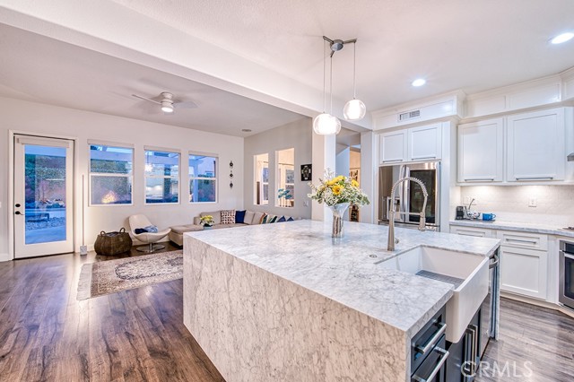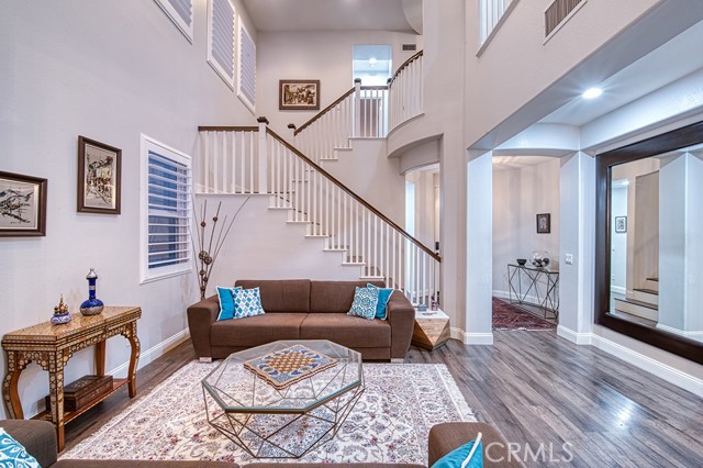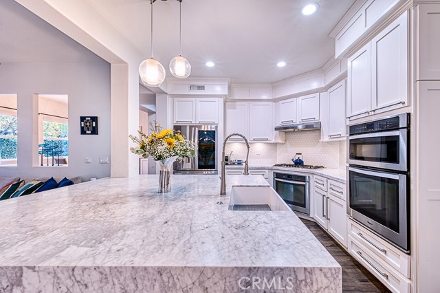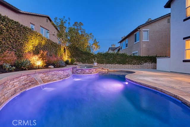 Nestled in the heart of the prestigious Coto de Caza community, this stunning residence at 16 Lyra Way is a true masterpiece of modern living. It harmoniously combines luxury, comfort, & an unbeatable location, making it the perfect sanctuary for families and entertainers alike. As you approach this gorgeous home, you'll be greeted by a charming facade. Step inside to discover an inviting circular foyer adorned with elegant flooring that leads seamlessly into the sophisticated living spaces. The grand formal living room boasts soaring two-story ceilings and an abundance of natural light, creating an airy ambiance that’s both welcoming and impressive. At the heart of the home, the gourmet kitchen is a chef’s paradise! It features sleek Carrara marble countertops with a striking waterfall island, bespoke cabinetry offering plenty of storage, and high-end appliances that cater to all your culinary needs. The adjacent private dining area, enhanced with custom built-ins & dual beverage and wine fridges, sets the stage for unforgettable dinner parties. The open family room is designed for both relaxation & entertainment, highlighted by a cozy fireplace and a built-in entertainment center. A main-floor guest bedroom with French doors provides privacy for visitors, along with a conveniently located full-sized bathroom. Venture upstairs to discover a thoughtful layout that includes four spacious bedrooms. The oversized master suite is a true retreat, featuring a luxurious ensuite bathroom and an expansive walk-in closet. Two additional bedrooms share a well-designed Jack-and-Jill bathroom. A fourth bedroom upstairs with its own en-suite bathroom offers privacy and convenience. Additionally, a versatile home office area and an upper-level laundry room with ample cabinetry make everyday living a breeze. The home is equipped with an owned solar electricity system, providing energy efficiency & savings. The new whole-house water filtering & conditioning system ensures optimal water quality throughout the home. Step outside into your own private paradise! The meticulously landscaped yard features a saltwater pool and spa, perfect for relaxation and entertaining. Host gatherings under the inviting patio cover complete with an outdoor fireplace, where cherished memories with friends and family are waiting to be made. The seamless transition between indoor and outdoor living ensures that this home is ideal for both intimate family moments and large-scale entertaining.