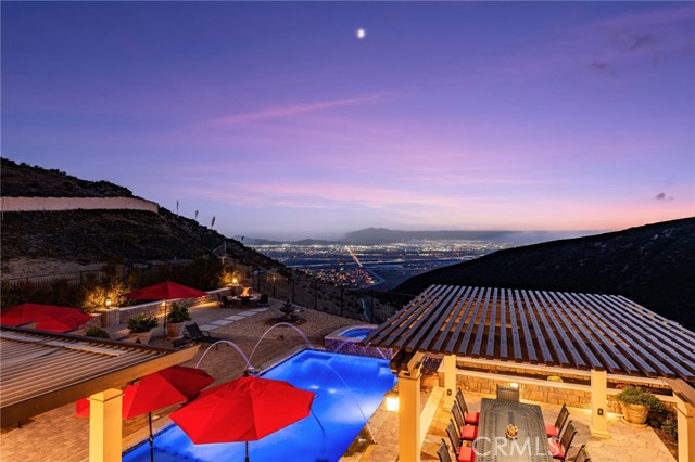 OPEN HOUSE GATE CODE IS #4117. Perched above it all at the top of the prestigious gated Panorama at Hunter’s Ridge community, 4117 Foxborough commands helicopter-style views: Mountains in the front, sweeping canyons in the back, and sunsets that paint the sky in colors you’ll never forget. Deer and wildlife wander past like something out of a storybook, yet you’re just minutes from city conveniences. Step outside and you’ll find an entertainer’s dream backyard designed for pure enjoyment. The pool sparkles with arcing fountains, while an elevated spa looks out across the canyon. Host evenings around the firepit, catch the game on the built-in entertainment system (complete with automatic roller shades for shade or privacy), or rinse off under the custom outdoor shower after a swim. Even your four-legged family members get their own luxury feature: a private dog run with a wireless doggy-door system. Inside, the home blends warmth, style, and custom detail in every corner. The open-concept kitchen and family room spill into the backyard for seamless indoor-outdoor living, while a custom bar in the living room sets the stage for memorable gatherings. White shutters dress every window, custom built-ins offer thoughtful storage throughout, and the downstairs guest suite is perfect for visitors or multigenerational living. Upstairs, the primary suite is a retreat of its own: One side offers a cozy lounge area for relaxation, while the other leads into a spa-like bathroom and, beyond that, a boutique-style dressing room worthy of a high-end fashion house. With custom organization and space to showcase every piece, it feels more like stepping into your own private atelier. From the suite’s private balcony, the canyon views stretch endlessly - a setting that turns morning coffee or evening wine into a ritual. The second floor also includes a custom craft room, a spacious loft, a dedicated office/work area, and an oversized walk-in linen closet, making the home as practical as it is luxurious. Every inch of this home has been lovingly maintained, down to the custom garage built ins. This isn’t just a home - it’s a hilltop sanctuary that blends sophistication, comfort, and lifestyle in a way that makes every day feel elevated, and proves true luxury can be found where you least expect it.