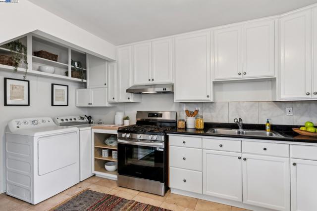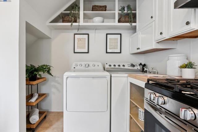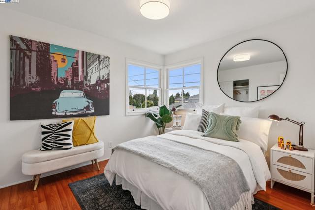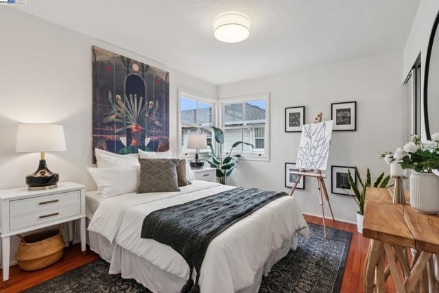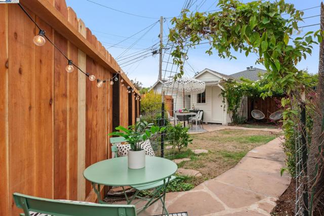 Discover a charming 3BD/1.5BA jewel box with large private yard and separate bonus space in Alameda’s historic Woodstock co-op. Located on the thriving West End, this 894 SQFT home lives larger with a thoughtful layout, ample outdoor space, and a separate building to work from home. Step inside the cheery living area where sunshine splashes across the room, built-in shelving gives a cozy feel, and windows look onto the community lawn and private garden. A renovated powder room adds convenience to the floor. The eat-in kitchen enjoys updated cabinets, appliances and counters, plus a laundry area and a door to the spacious backyard for lovely indoor/outdoor living. Surrounded by mature landscaping, dine al fresco, garden in the raised beds, unwind on the patio, or work in the bonus structure. Back inside, the sunny bedrooms are tucked away for privacy and quiet on the upper floor. All have good closets and share an upgraded full-bath. There’s dedicated parking on the street, and you’re close to the ferry for an easy commute to SF. Down the road, find respected K-12 public schools, lively Alameda Point with its dining, wineries and ferry to SF, Webster Street shops and restaurants, and the glorious Alameda coast with its beaches and miles of shoreline trails.