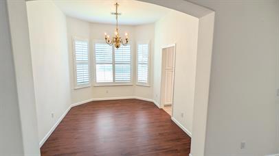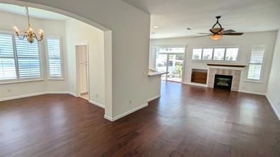 Experience resort-style living in The Villages Golf & Country Club, a vibrant 55+ community. Featuring 3 bedrooms and 2 bathrooms with AC, this unit offers a formal entry that leads to a large great room and a bright breakfast nook adjacent to the kitchen. High ceilings throughout the home create an open and airy atmosphere. Relax in the spacious primary bedroom, which opens onto the back patio and includes a walk-in closet with built-in organizers and additional storage. The primary bathroom shines with dual sinks, an oversized tub, and a separate standing shower. As a resident, you'll have access to over 100 social organizations and activities, including golf, tennis, pickleball, pools, and bocce ball courts. Please note that at least one resident must be 55 years or older.