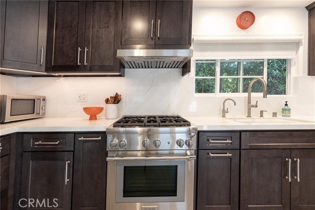 Ideally located in Sherman Oaks on a tree-lined street in the heart of Library Square, this charming, beautifully updated 3-bedroom, 2-bathroom home offers the perfect blend of comfort, style, and convenience. Featuring a newly remodeled chef's kitchen with eat in area, elegant quartz countertops, modern cabinetry, and premium Thermador stainless steel appliances that flow seamlessly into the dining room & living room. This space is designed for both everyday living and entertaining. The home’s light-filled layout includes 3 cozy bedrooms, tastefully updated bathrooms, newer windows and doors and a dedicated laundry room for added functionality. Step outside to a private backyard retreat with 2 covered patio areas and a newer built in BBQ. Enjoy the versatility of a detached, finished garage—ideal as a home office, gym, studio, or bonus living space. Located just minutes from Ventura Boulevard’s vibrant shops, dining, and top-rated schools (Sherman Oaks Elementary), this turnkey property is a rare find in one of Sherman Oaks’ most desirable neighborhoods. Move-in ready and full of charm, this home is not to be missed!